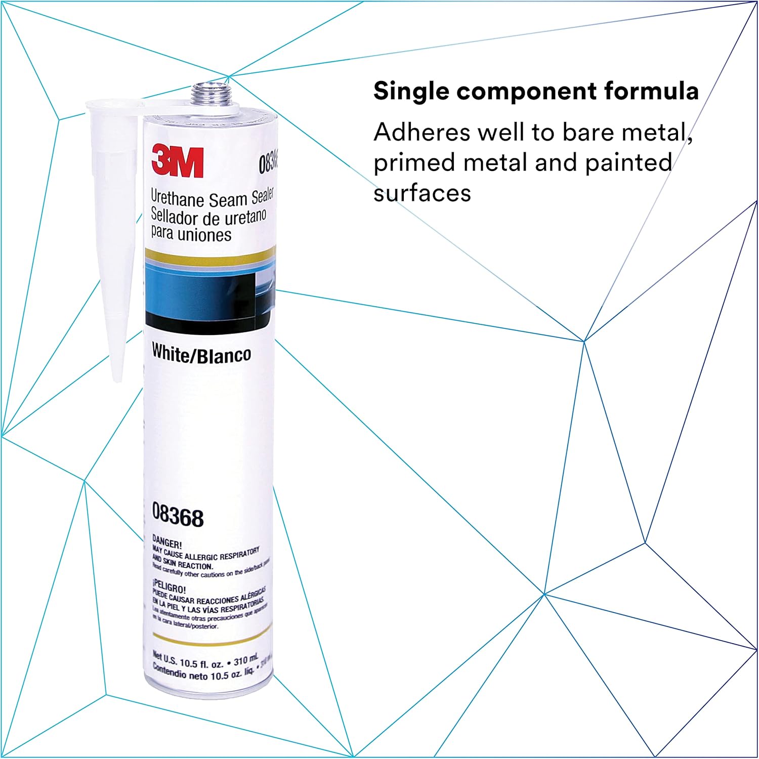 3M Urethane Seam Sealer, 08368, White Color, High Solids, Permanently Flexible, 310mL/10.5 fl oz Cartridge