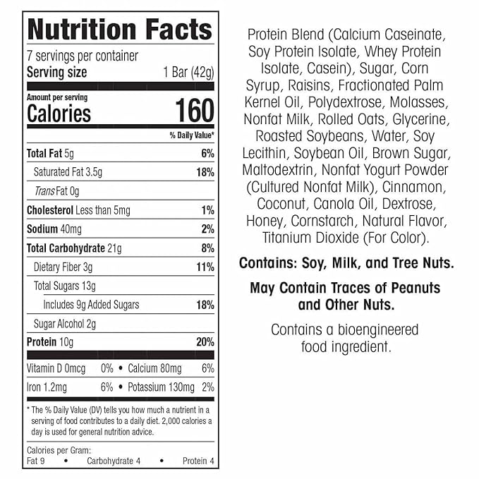 - Protein Packed: Each bar is packed with 10g protein, providing a nutritious boost to fuel the day and keep one feeling energized and satisfied.