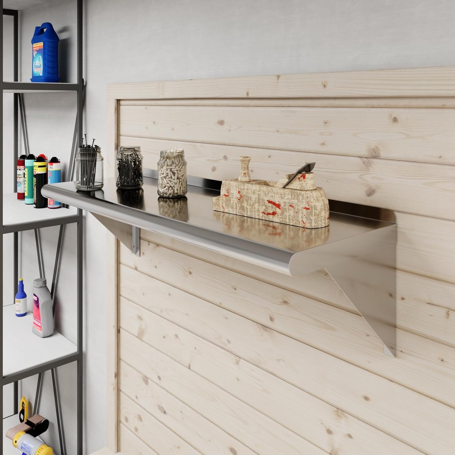 - This corrosion-resistant wall mount shelf can handle anything you throw at it and will last for years to come. Easy to clean and sterilize, metal shelves are superior to wood or glass. Food and liquid wonβt get stuck or ruin the integrity of the surface. Easily wipe away excess with no fuss, mess, or contamination.