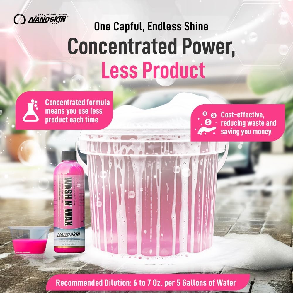 - β ADD A JUST-WAXED, HIGH GLOSS FINISH: With fortified carnauba-infused formulas, Nanoskin Wash Nβ Wax provides classically advanced, foaming capability for your routine washes and adds extended protection to your car, RV, boat, or vehicle finish.
