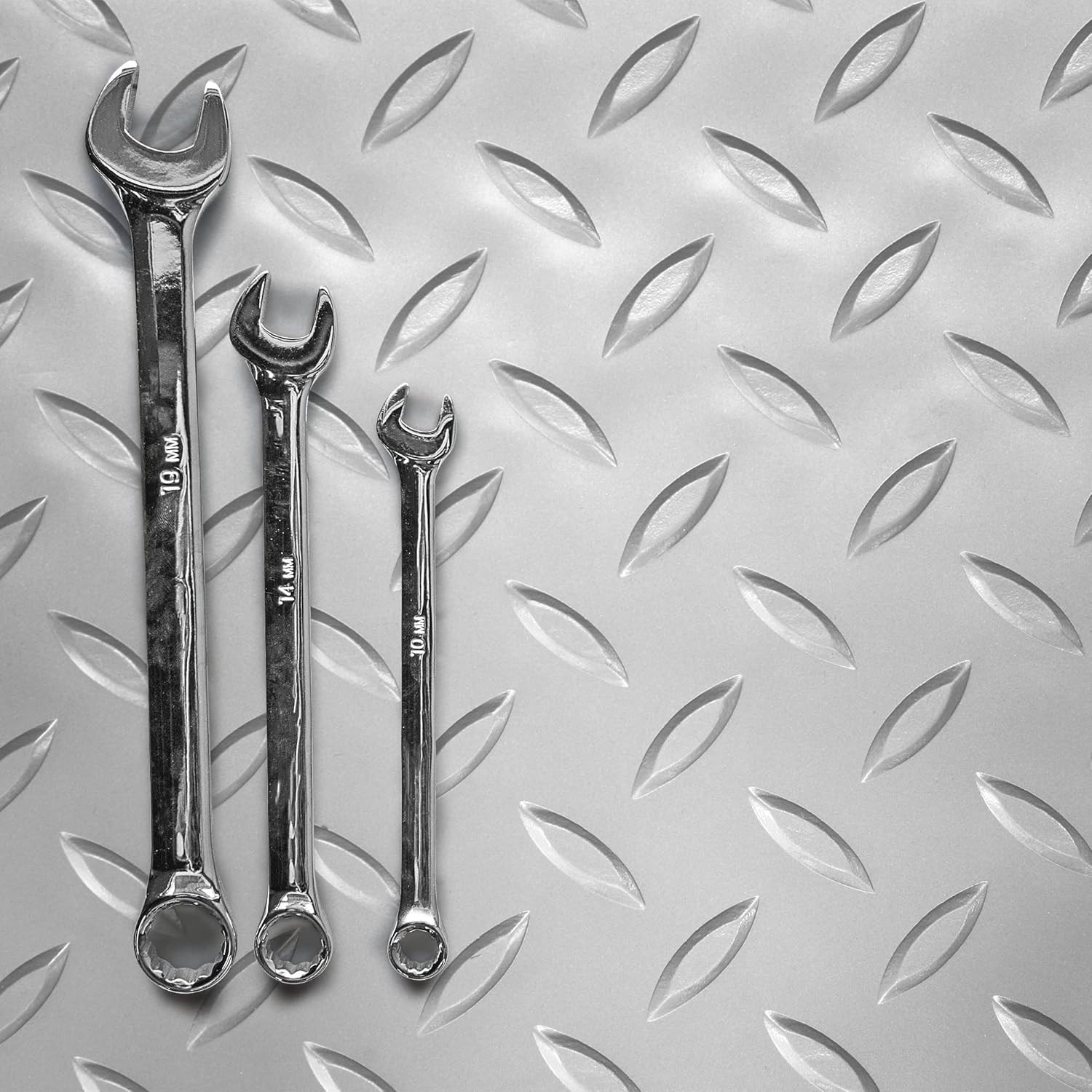 - RUGGED DIAMOND-PLATE TEXTURE: Made for maximum versatility and industrial style, our garage flooring mats are easy to trim and fill the room with fewer pieces, offering a near seamless edge-to-edge work surface that allows equipment to move freely.