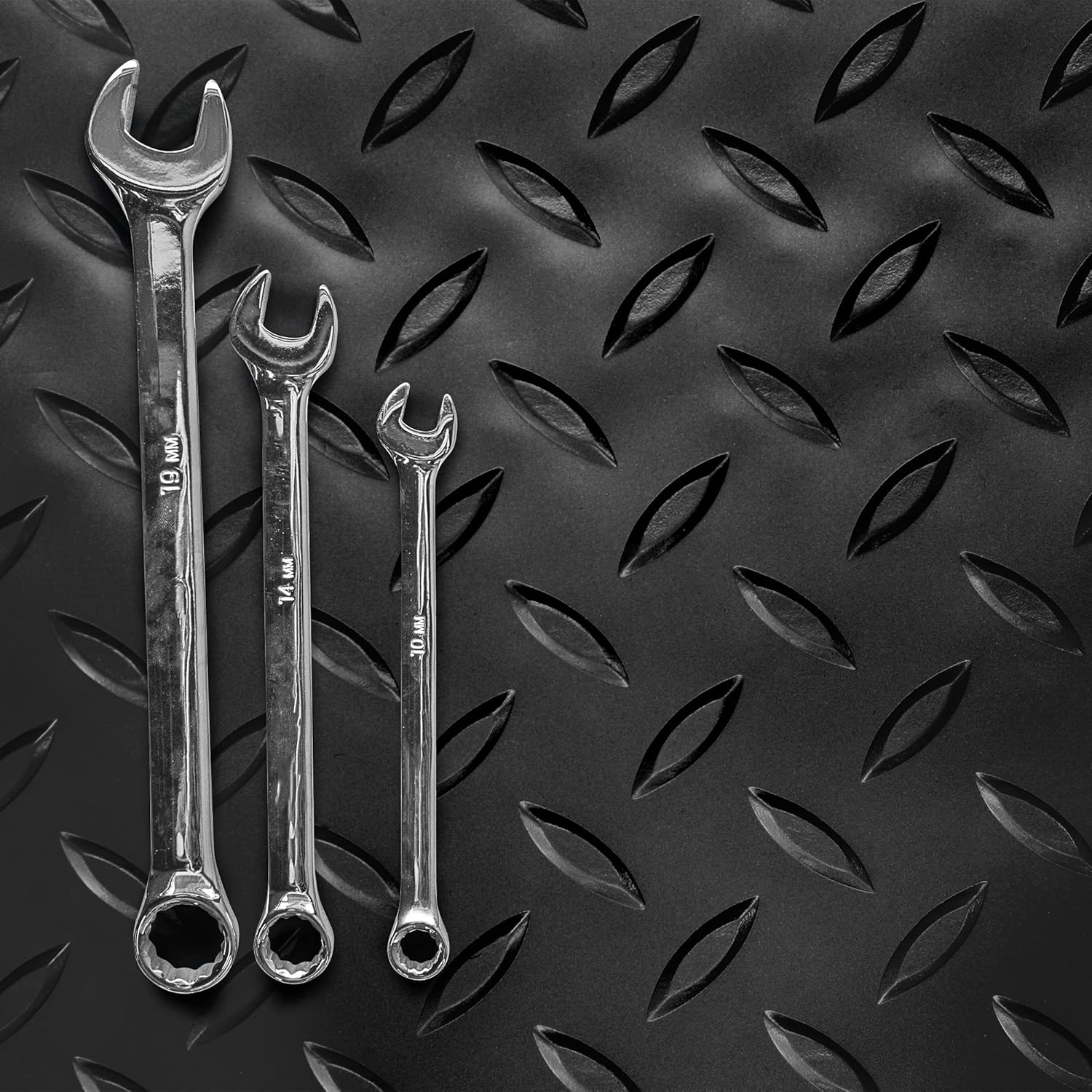- RUGGED DIAMOND-PLATE TEXTURE: Made for maximum versatility and industrial style, our garage flooring mats are easy to trim and fill the room with fewer pieces, offering a near seamless edge-to-edge work surface that allows equipment to move freely.