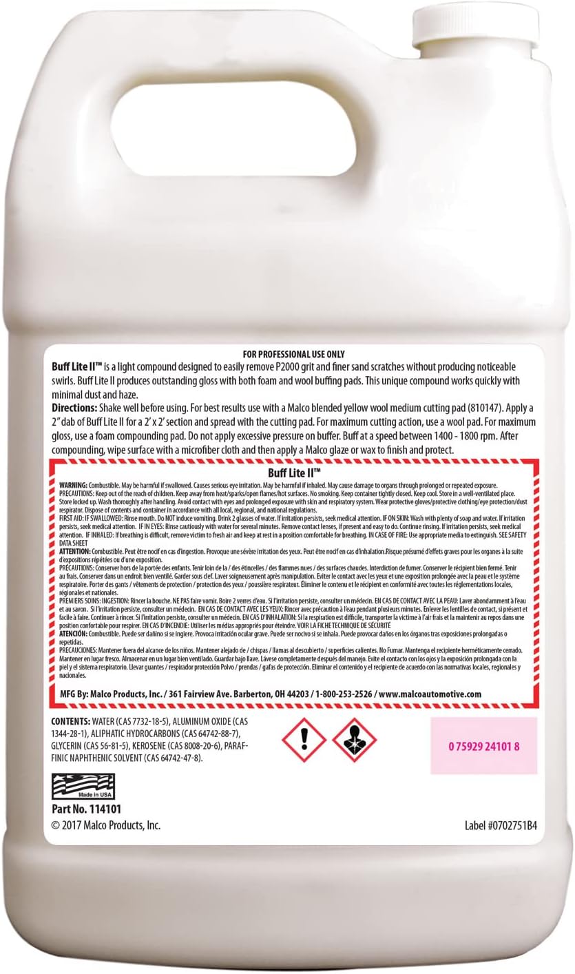 Malco Buff Lite II Finishing Crème – One-Step Professional Cutting, Polishing and Finishing Compound/Removes Brush Marks, Car Wash Scratches, and Snow Brush Scratches / 1 Gallon (114101)