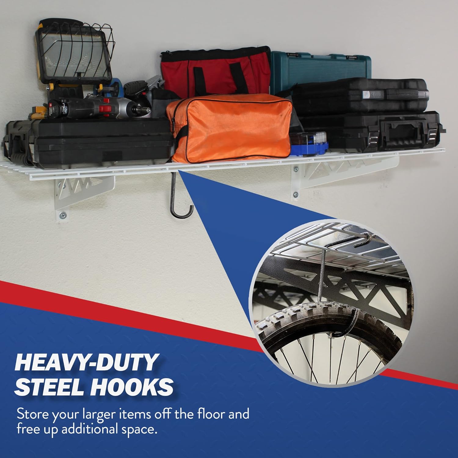 - SUPERIOR DESIGN: Heavy-duty wire decks and brackets combined with an innovative design provide a sturdy and safe storage solution. Deck clips secure wire deck to wall to prevent any rattles or movement and our unique, rear-angled bracket design safely secures and minimizes the possibility of items falling forward when compared to alternative wall shelf designs.