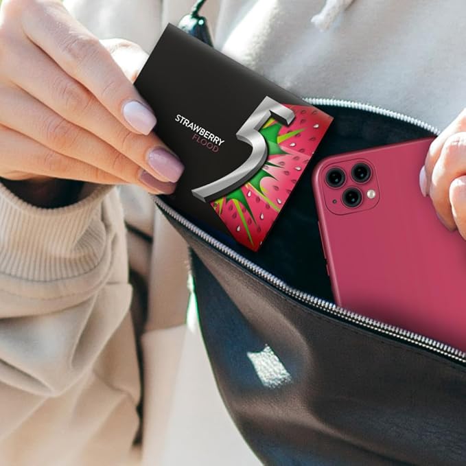 5 Gum Sour Strawberry Sugar Free Chewing Gum Bulk Pack, 15 Stick (Pack of 10)