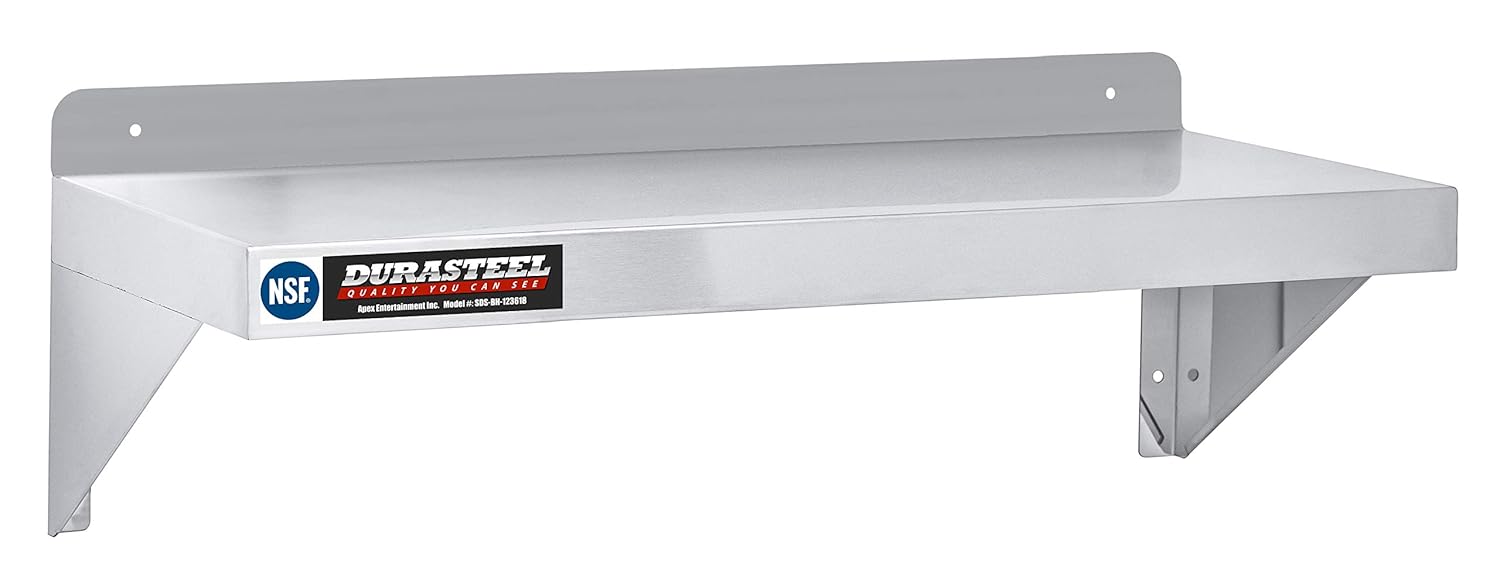 - Heavy-Duty & Commercial Grade: DuraSteel's wall mounted shelves are made from sturdy 18-gauge stainless steel, securely holding heavy items for home and commercial use