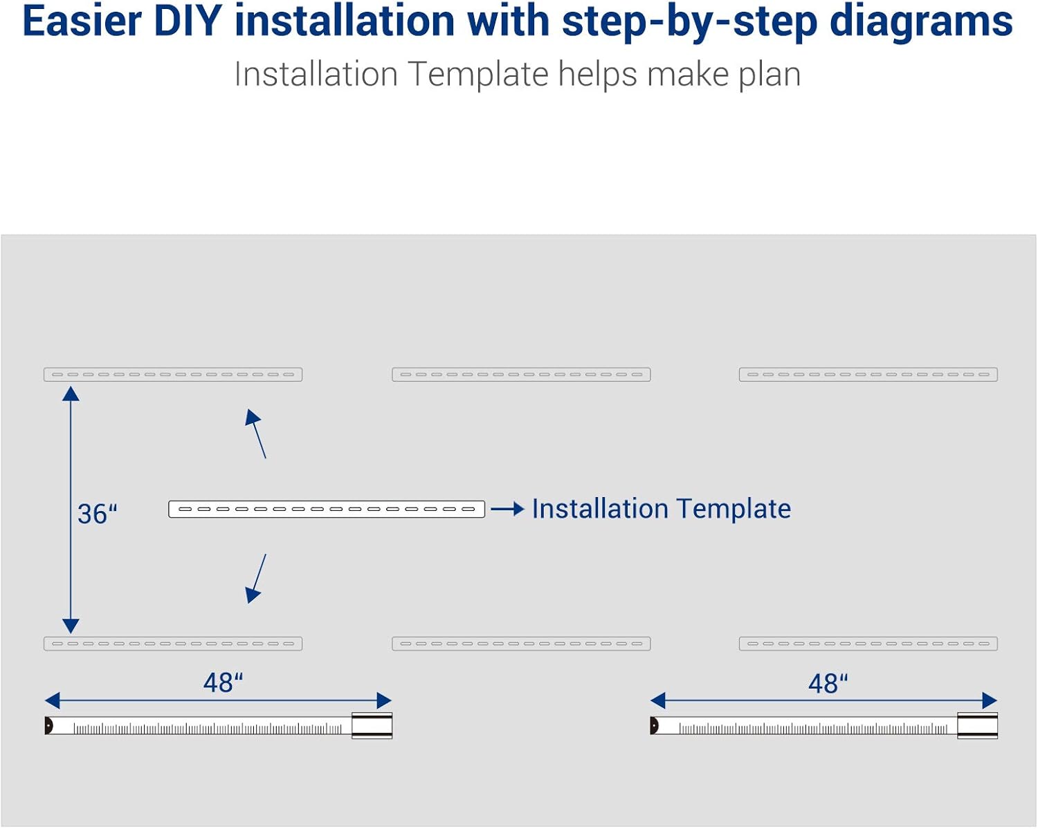 - DIY INSTALLATION:Installation template helps make plan.This overhead storage rack fits all ceiling joist spacing≤24",if joist spacing>24",only fits the ceiling spacing of 36".