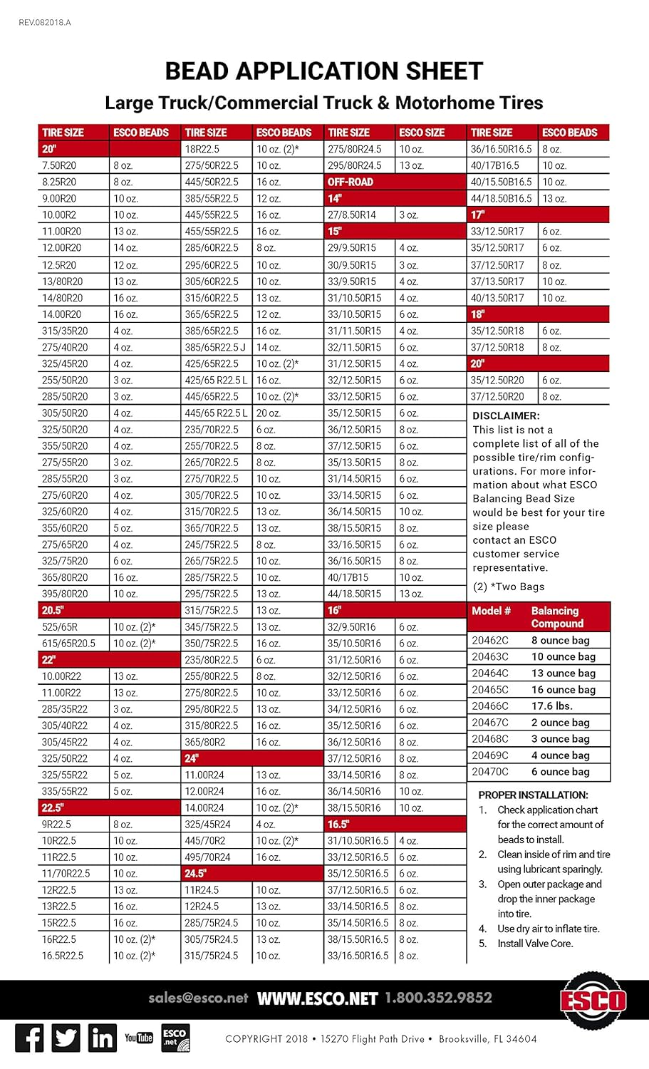 - IMPROVE FUEL MILEAGE: ESCO Balancing Beads roll freely inside your tire which maintains proper balance as your tires naturally wears