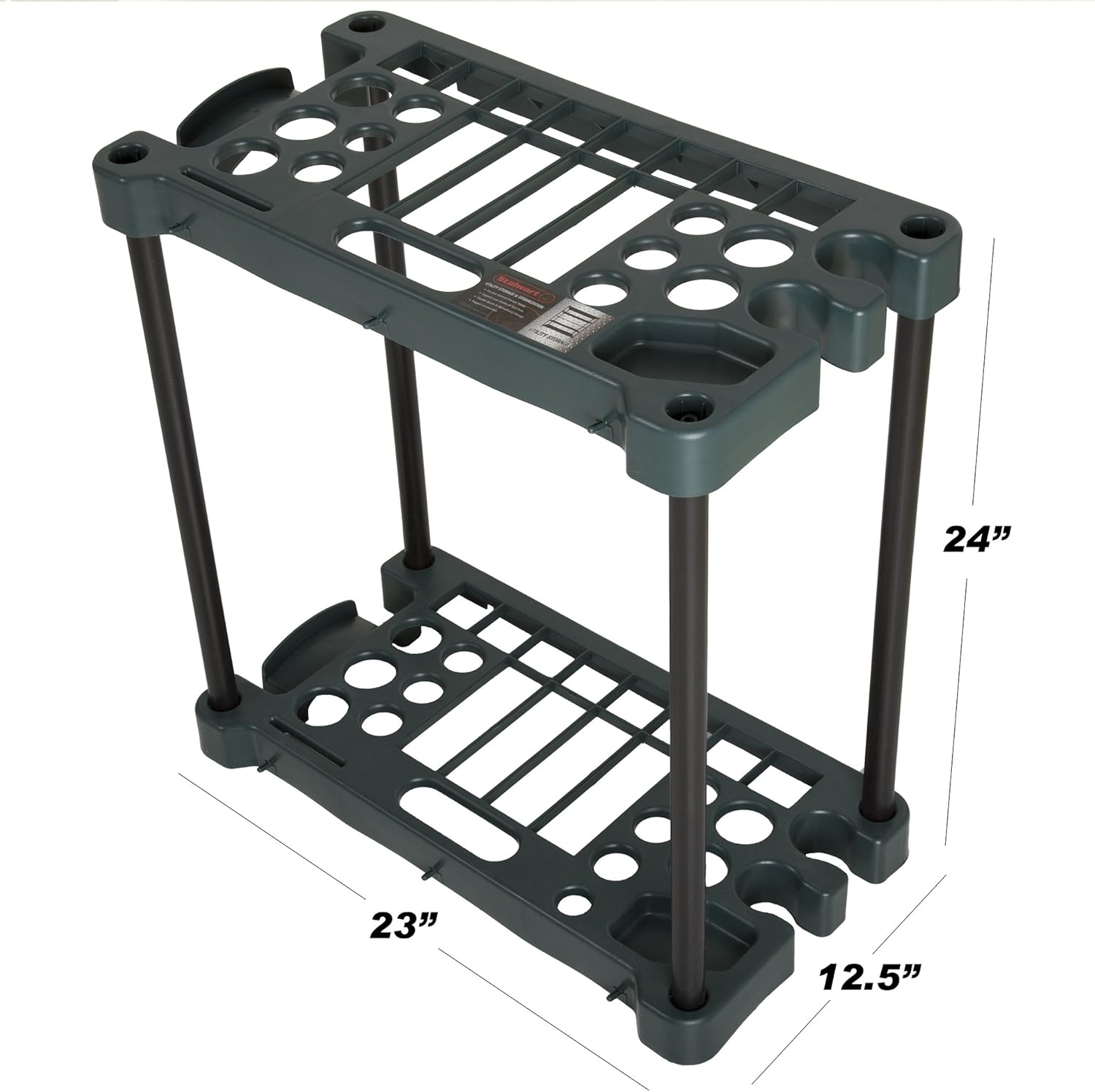 - SPACE-SAVING - At 23-inches-long, 12.5-inches-wide, and 24-inches-tall, this garden tool storage will maximize limited floor space while improving your garage organization. The tool rack's lightweight, portable design allows it to be moved with ease.