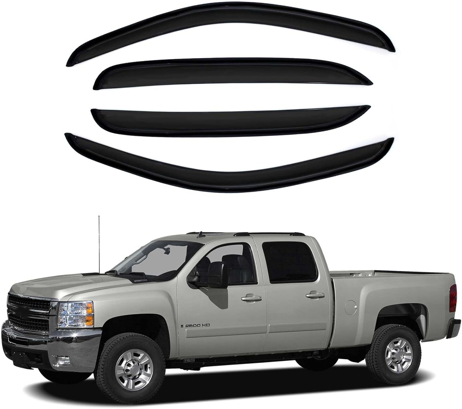 Sun/Rain Guards Window Visors Wind Deflector Compatible with Avalanche/Suburban/Yukon/Silverado/Sierra Crew Cab 4pcs
