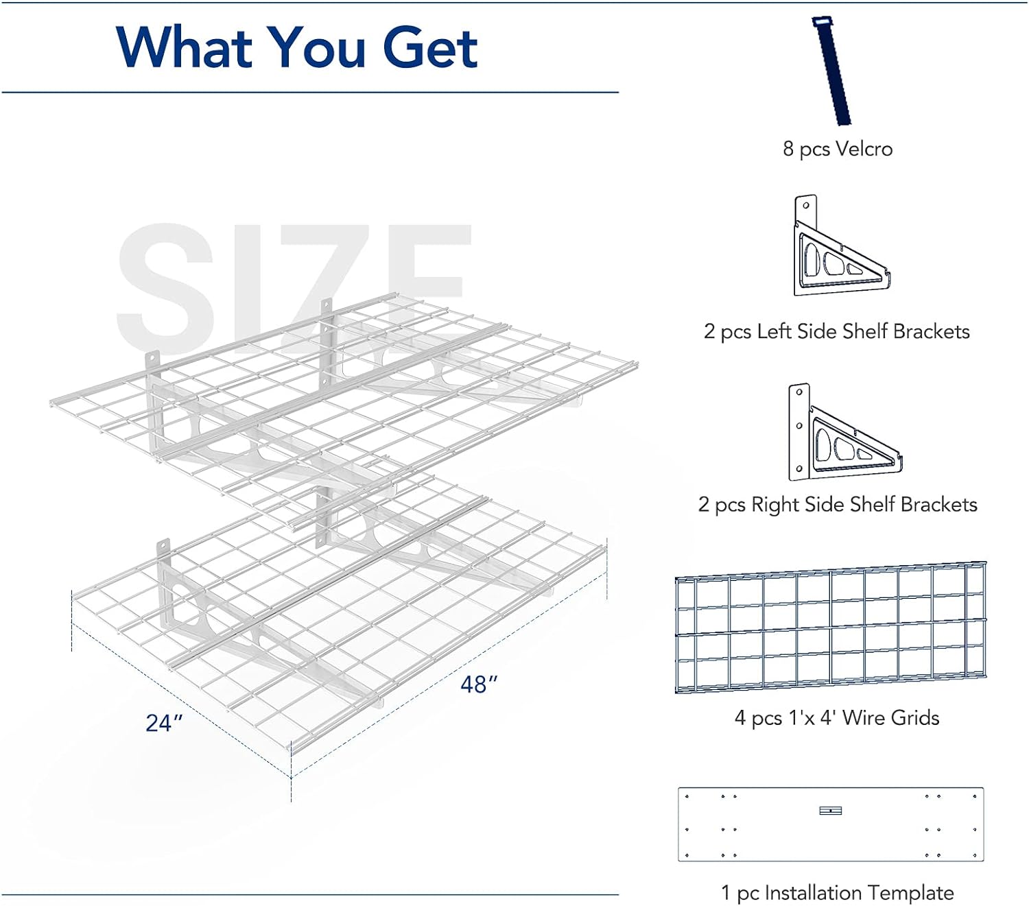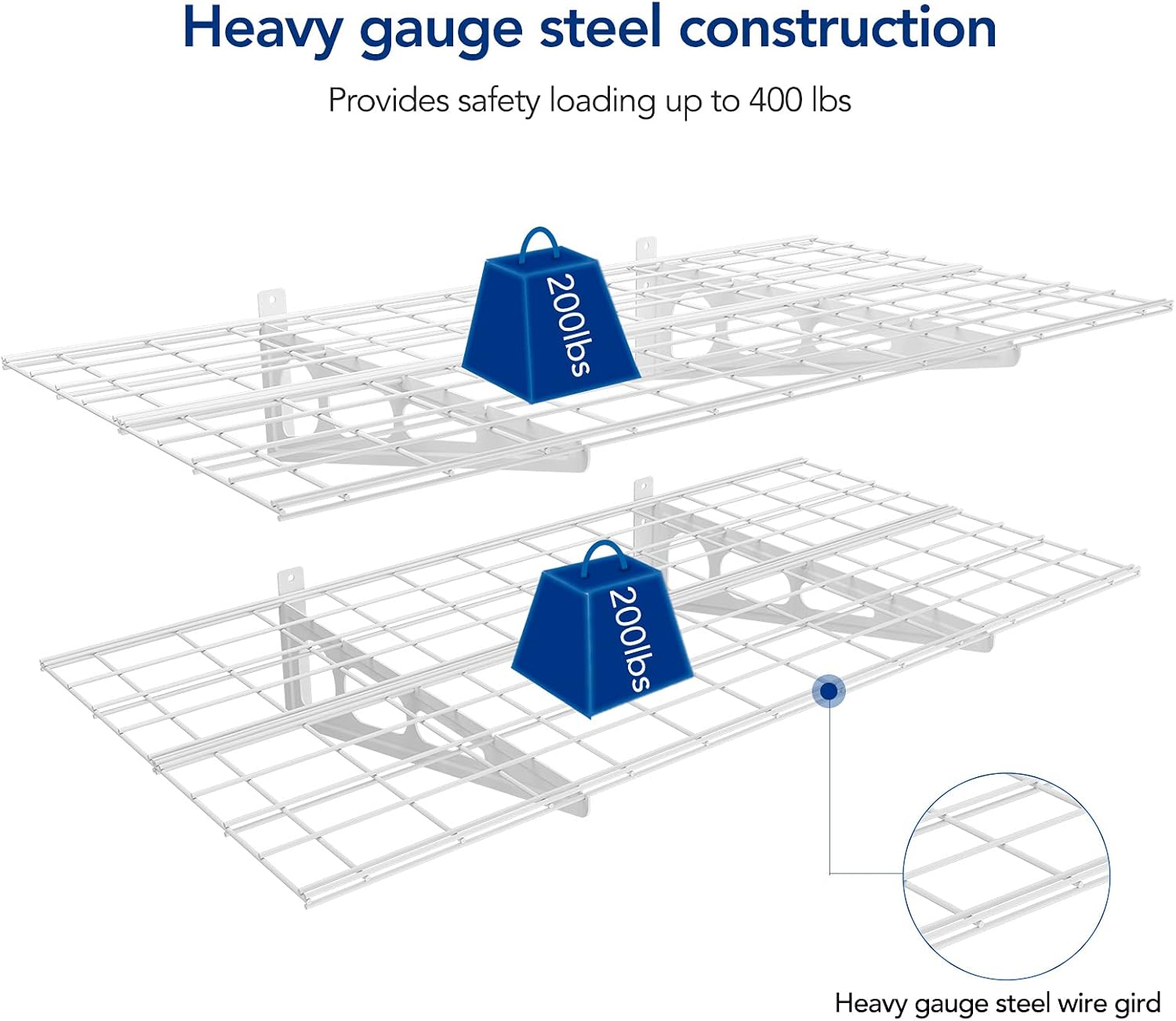 FLEXIMOUNTS 2-Pack 2x4ft 24-inch-by-48-inch Wall Shelf Garage Storage Rack Wall Mounted Floating Shelves, White