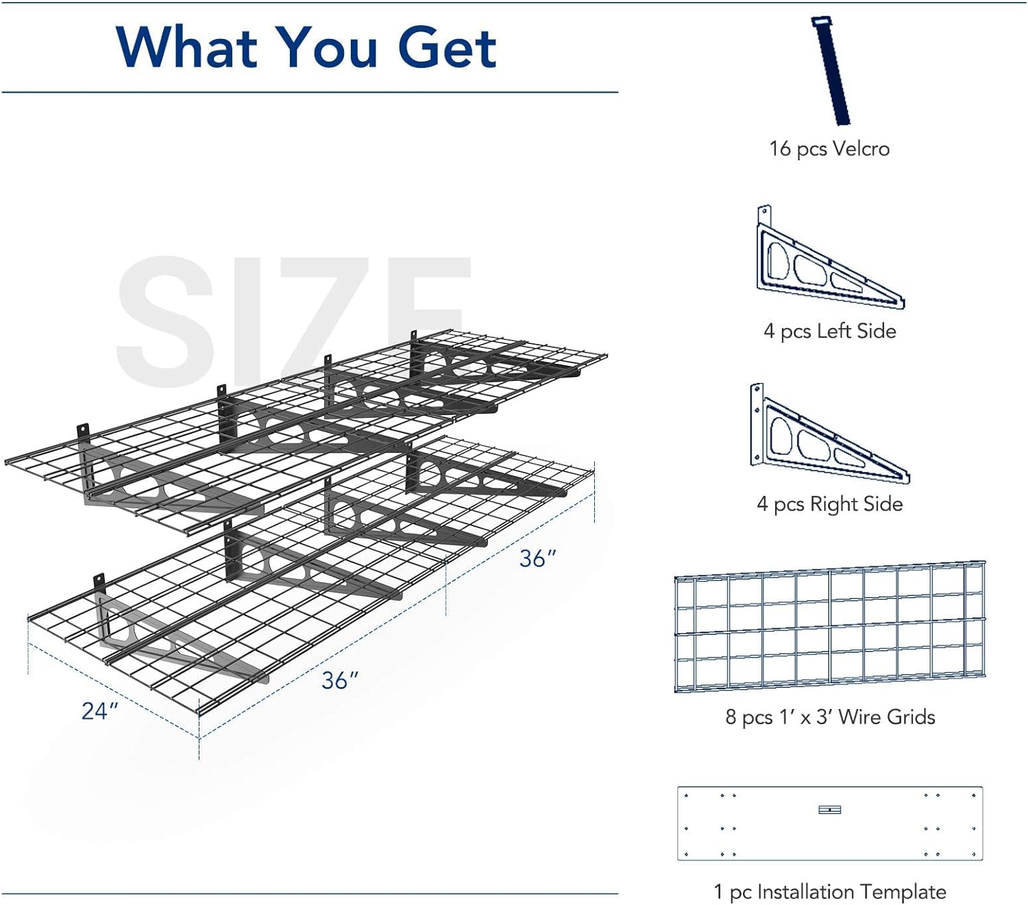 - 1600 lbs Tested, 800 lbs Total Rated Capacity: Our garage wall shelving is rigorously tested to handle a total of 1600 lbs, ensuring unmatched safety and durability. It supports up to 800 lbs in total and 200 lbs for each individual unit.