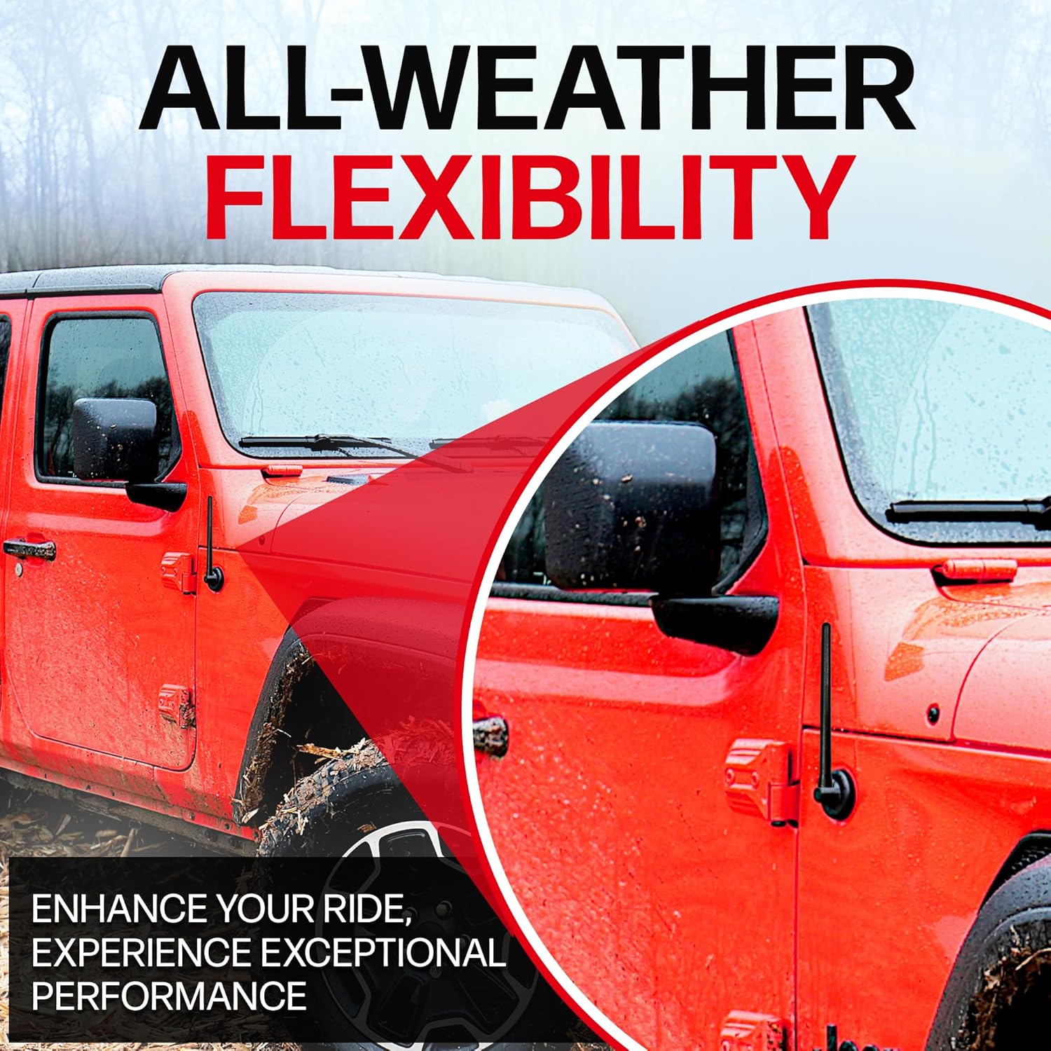 - CAR WASH SAFE - Constructed with durable EPDM rubber and 304 stainless steel threading MADE IN USA, this antenna for Jeep Wrangler / Gladiator and is designed to withstand car washes without bending or breaking. Its robust materials ensure long-lasting performance and reliability, providing peace of mind for everyday use. First to market in 2019 with a 2 Year coverage from purchase date. If it breaks, we issue a replacement. Its strength is Tried, Tested and Proven.
