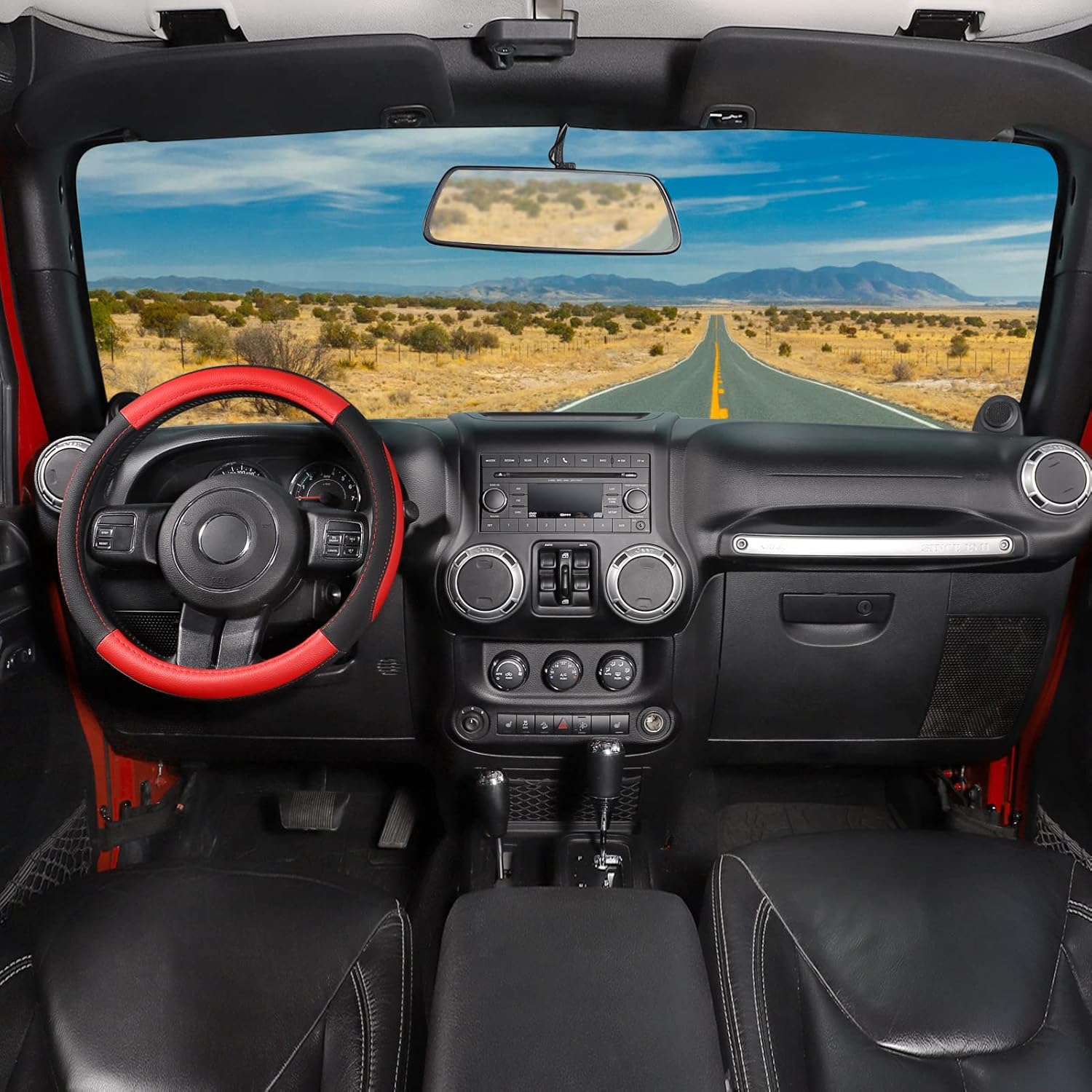 - ARMOR UP YOUR CAR INTERIOR: The durable and easy-to-install steering wheel cove is the premier option for covering an old or worn original factory steering wheel. The delicate splicing design adds texture to the interior of your car.