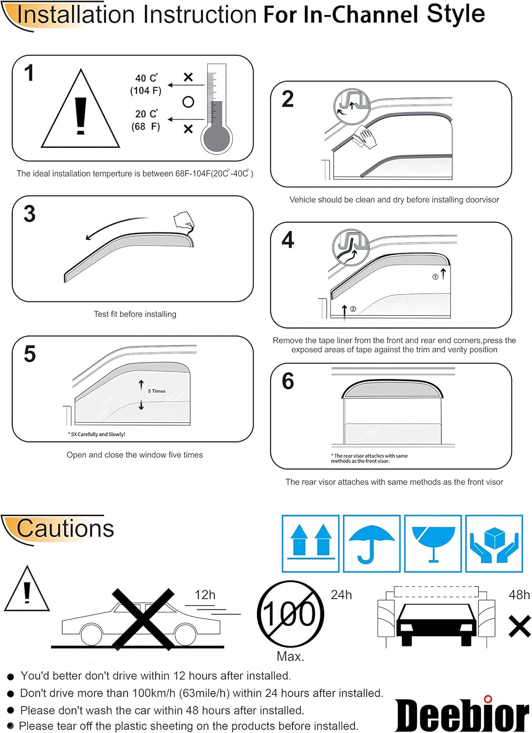 4pcs Side Window Deflectors Window Visors for 97-13 Expedition Sun/Rain Guard Visor