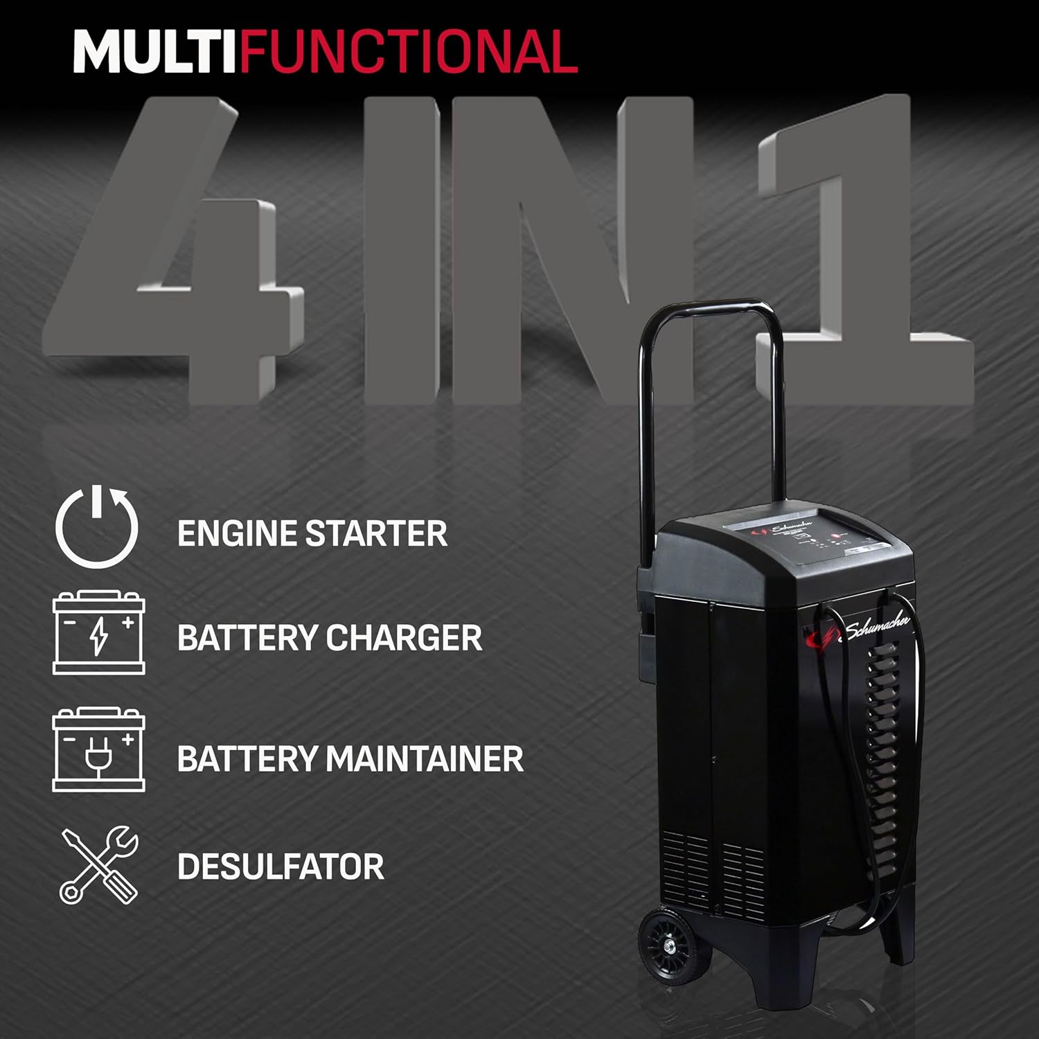- Complete Package β Schumacher Electric SC1324 4-in-1 200 Cranking Amp 12 Volt Wheeled Battery Charger, Maintainer, and Engine Starter and user manual