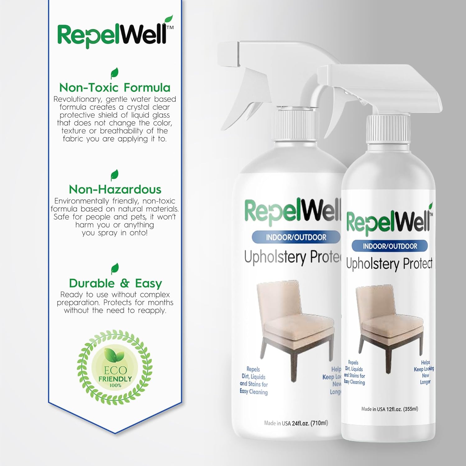 - ➤Includes one (24oz) bottle of RepelWell Upholstery Protect