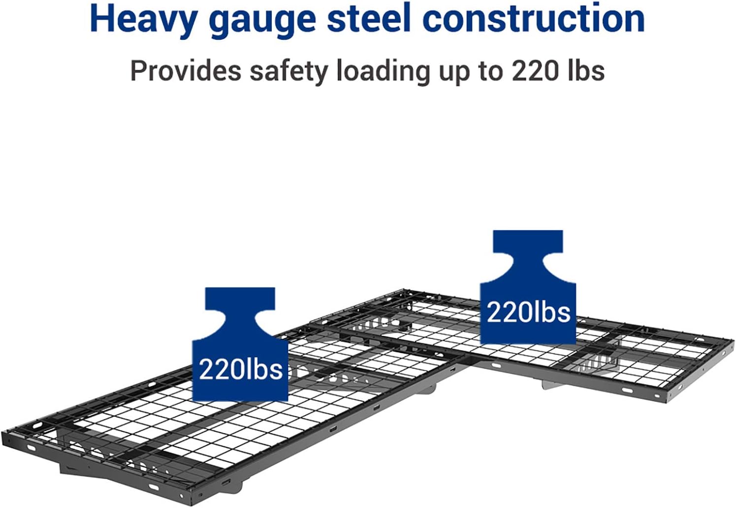 - 880 lbs Tested, 440 lbs Total Rated Capacity: Our garage wall shelving is rigorously tested to handle a total of 880 lbs, ensuring unmatched safety and durability. It supports up to 440 lbs in total and 220 lbs for each individual unit.