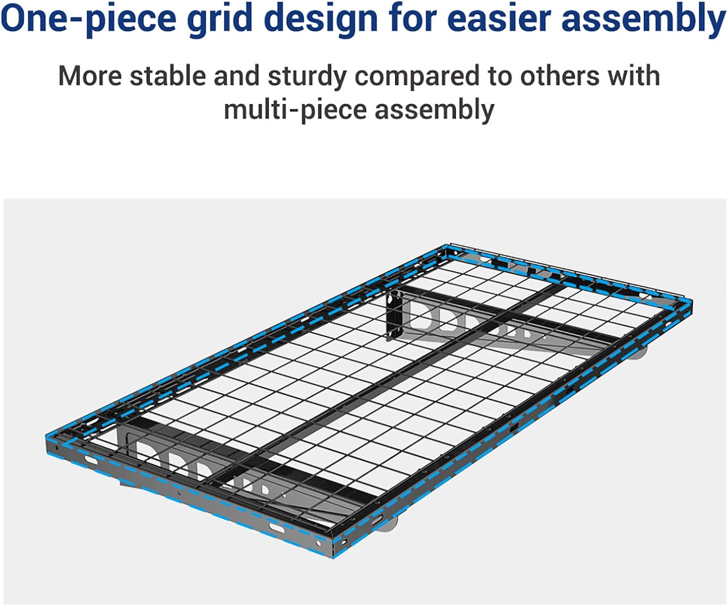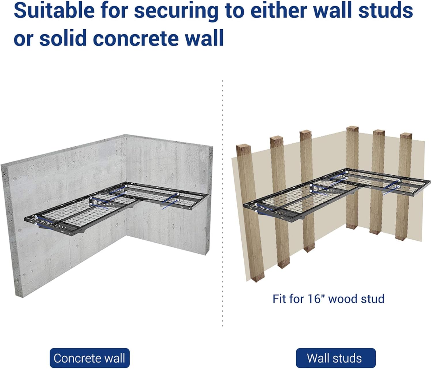 - Integrated Grid Design: More stable and sturdy compared to others with separate frame and wire. L-shaped heavy-duty steel frame makes the wall shelf more aesthetic, safe and strong load-bearing. Product Dimension: 24"D x 48"W x 6.9"H.