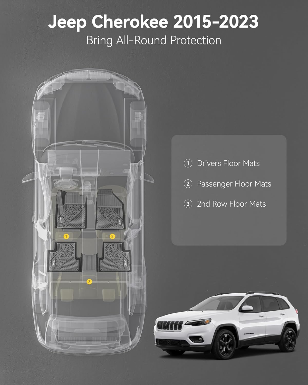 - Material Thermoplastic Elastomer (TPE) : Vehicle Service Type Jeep Cherokee 2015-2023(Non grand Cherokee)