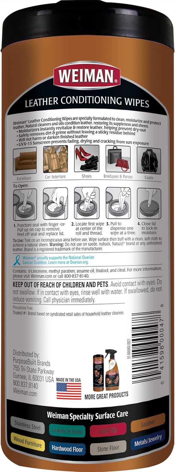 - BRING LEATHER TO LIFE: Improve the look and feel of your leather by safely removing dirt, soil and residue. Weiman softens and moisturizes finished leather to revitalize your favorite furniture and accessories.