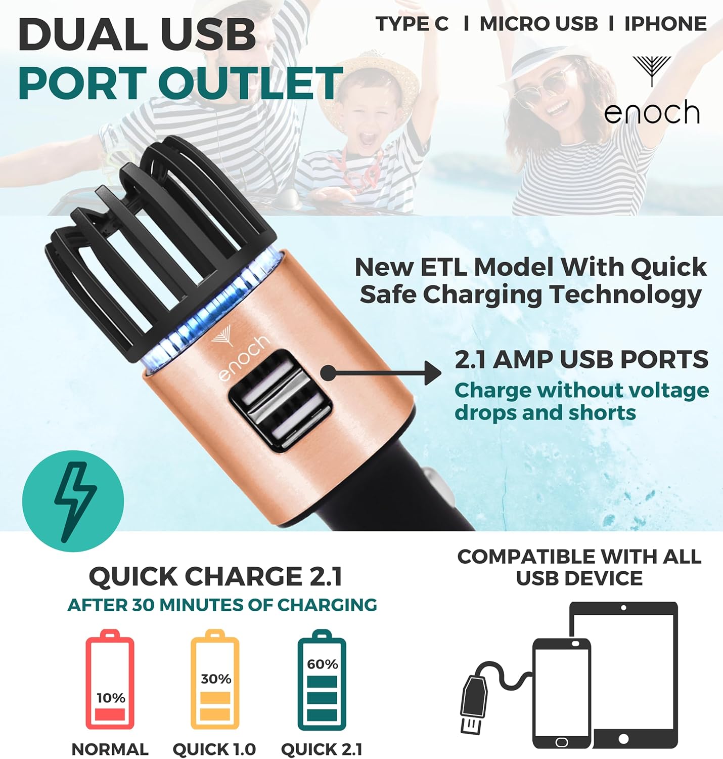 - ăETL Certified and CARB Compliant for Safe Driving Useă: The Enoch air purifier is ETL certified and CARB compliant, meeting top safety and emission standards for car environments. A soft blue LED light helps you easily locate the device and USB ports in dark settings. Drive with confidence knowing your air is clean and the device is fully tested.