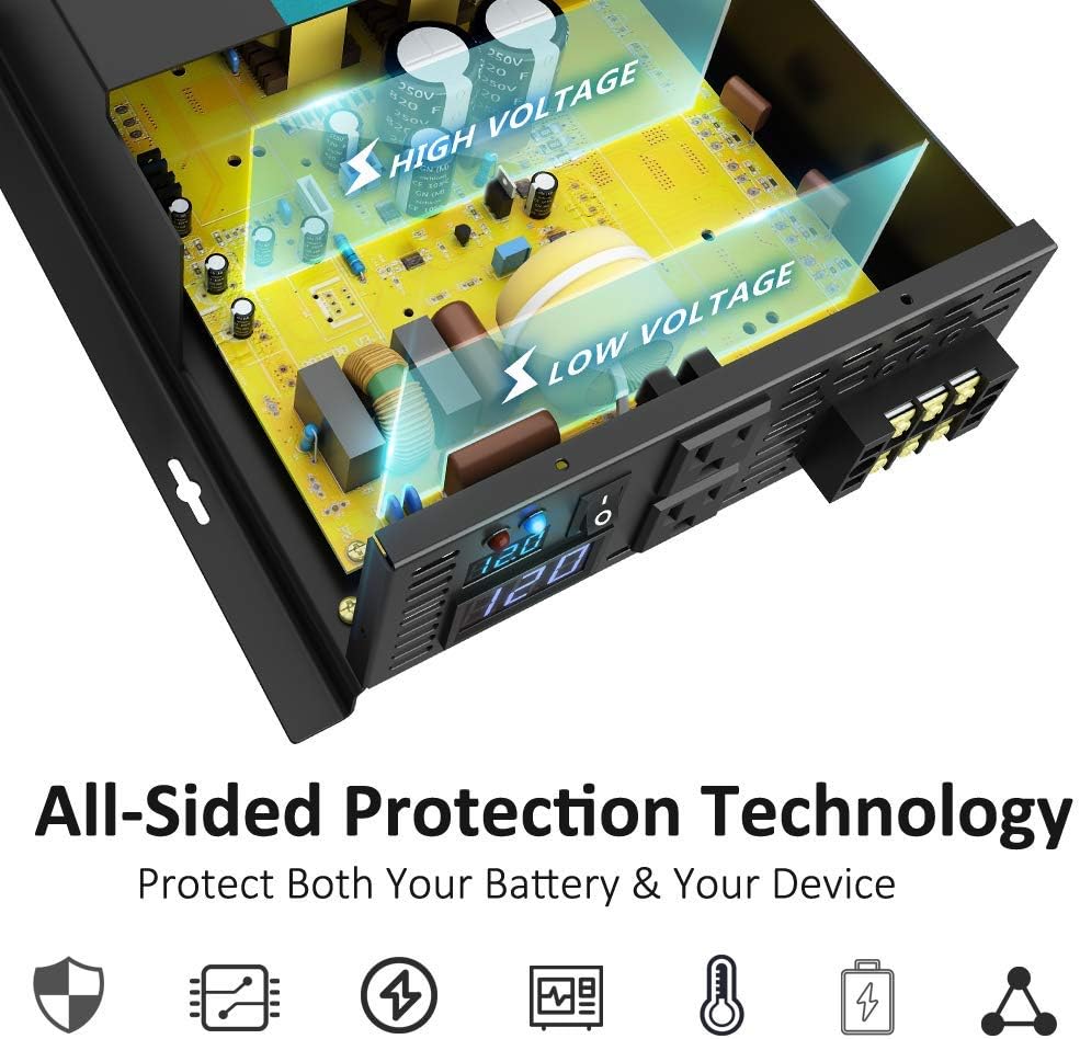 - Fully Safety Protections: Over voltage, Low voltage, Overload, Short circuit, Over heat, polarity reverse protection(fuse), Ground protection from leakage of electricity.