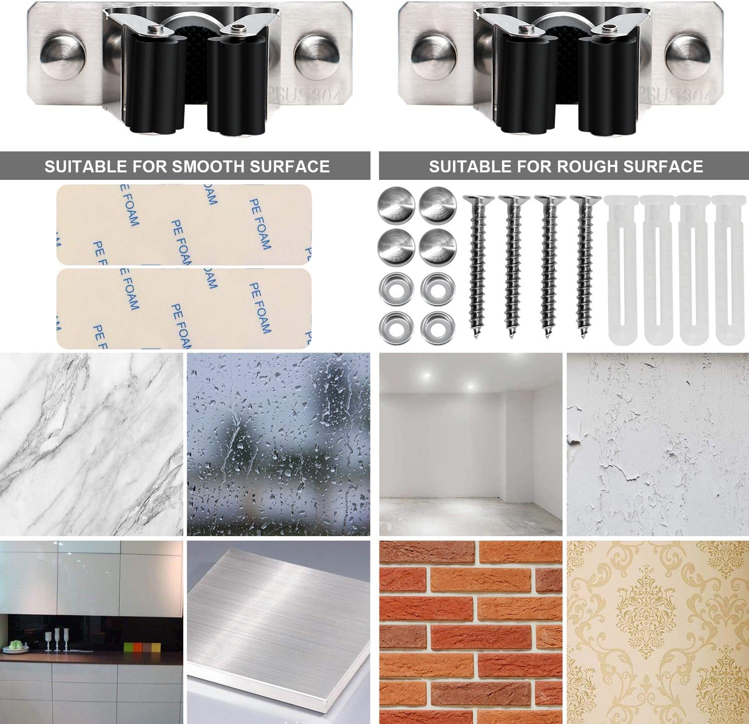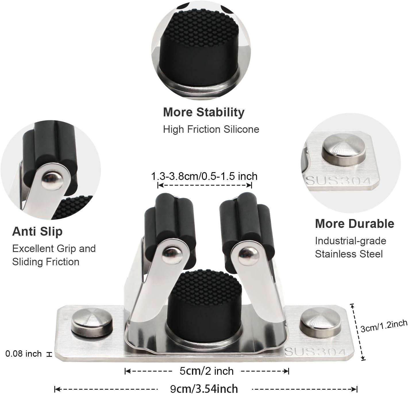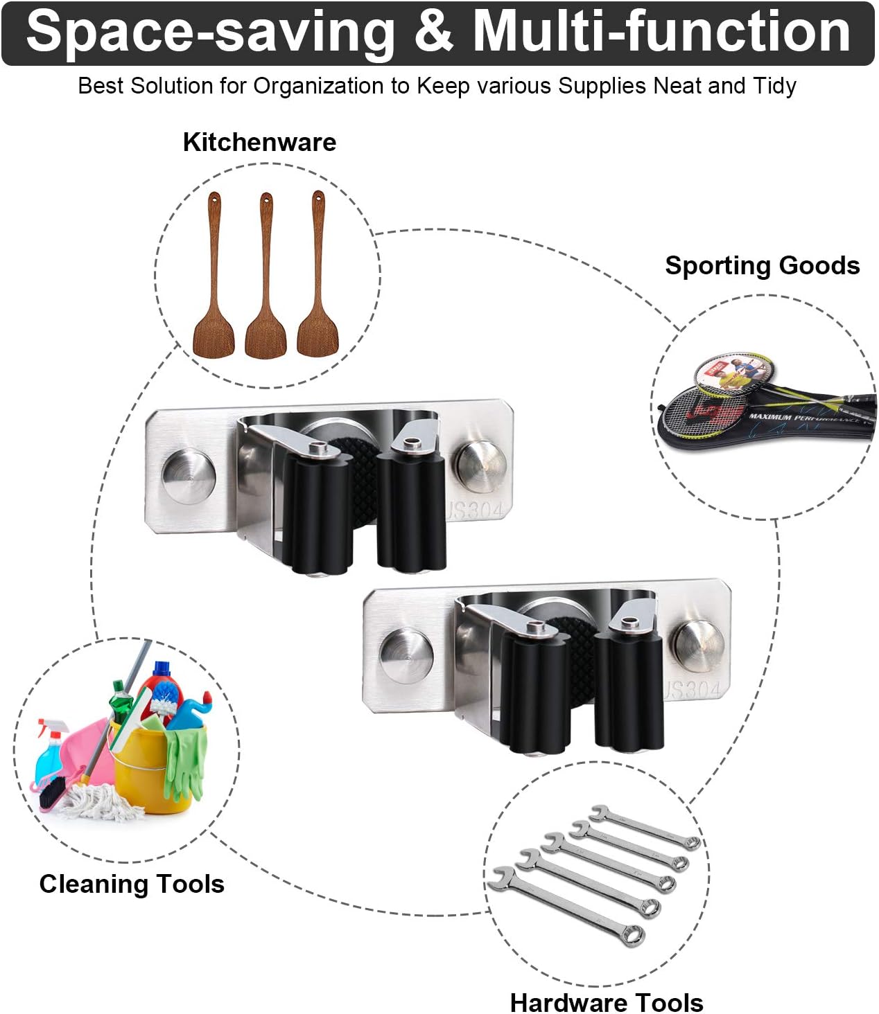 Mop and Broom Holder Wall Mount, 2PCS Heavy Duty Stainless Steel Broom Hanger Wall Mounted Broom Organizer Garage Organization Tool Organizer Storage for Laundry Room Home Garden Garage