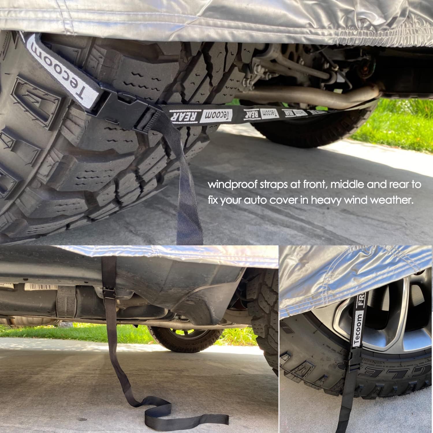 - Complete Protection - Tecoom car covers is perfect for indoor and outdoor use, no matter the sun or the cold weather, protects your car safe from UV rays, snow, rain, frost, sand,dust, leaves, branches, birds dropping