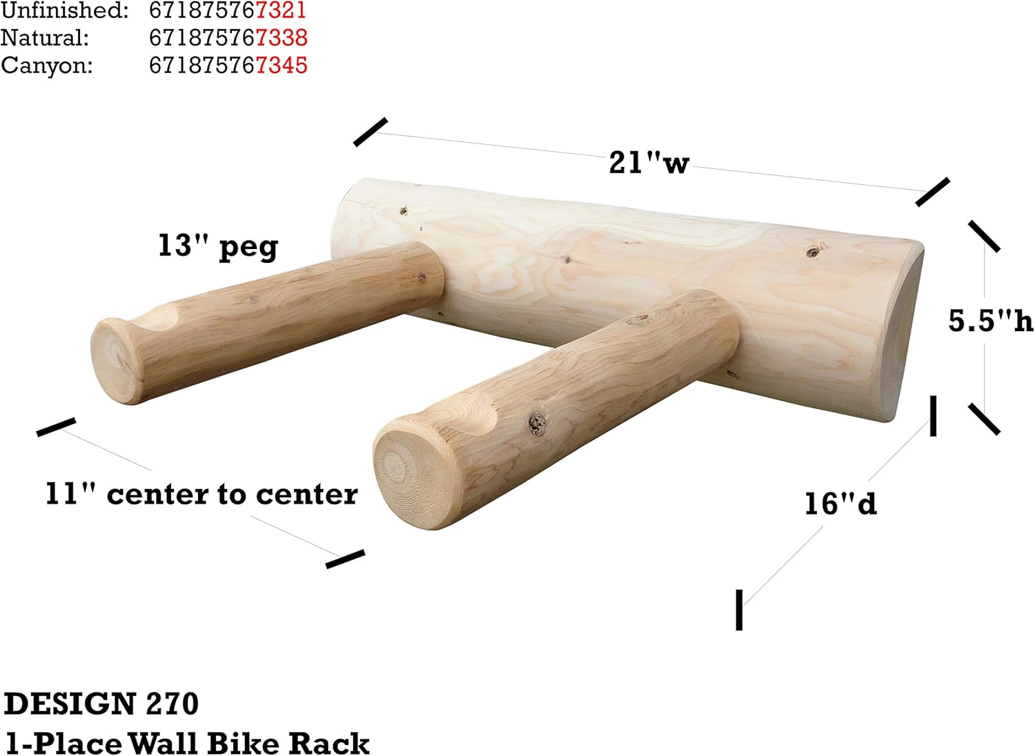 1-Place Wall-Mounted Bike Log Rack, Road Bike Wall Mount Hook, Bicycle Hangers for Garage Wall Racks, Bicycle Hooks for Hanging, Indoor Storage Garage Hooks for Bikes - Canyon Brown