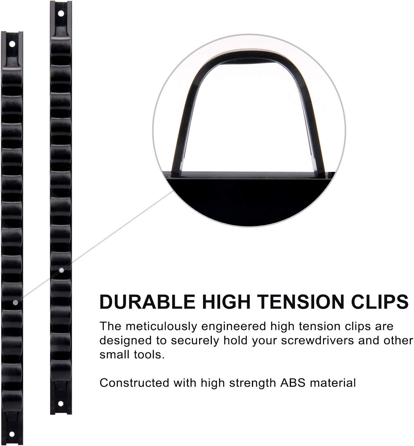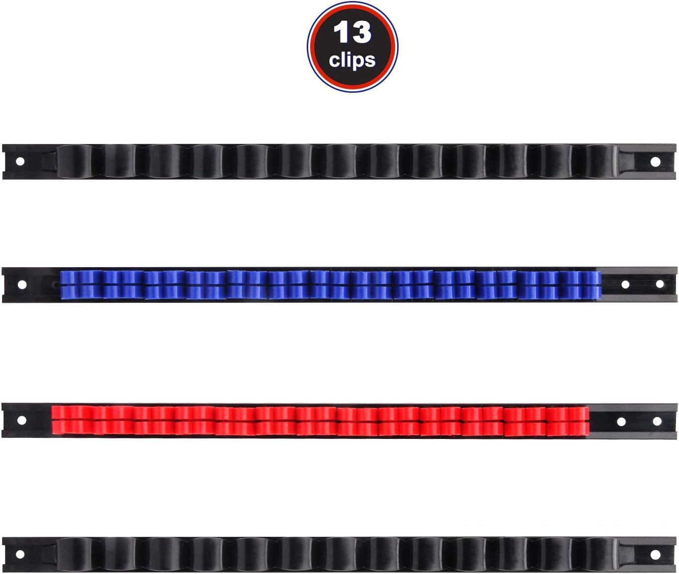 - Set includes 2 pcs screwdriver rails with 13pcs red clips and 13pcs blue clips and 2 pcs wrench rails with 26pcs black clips
