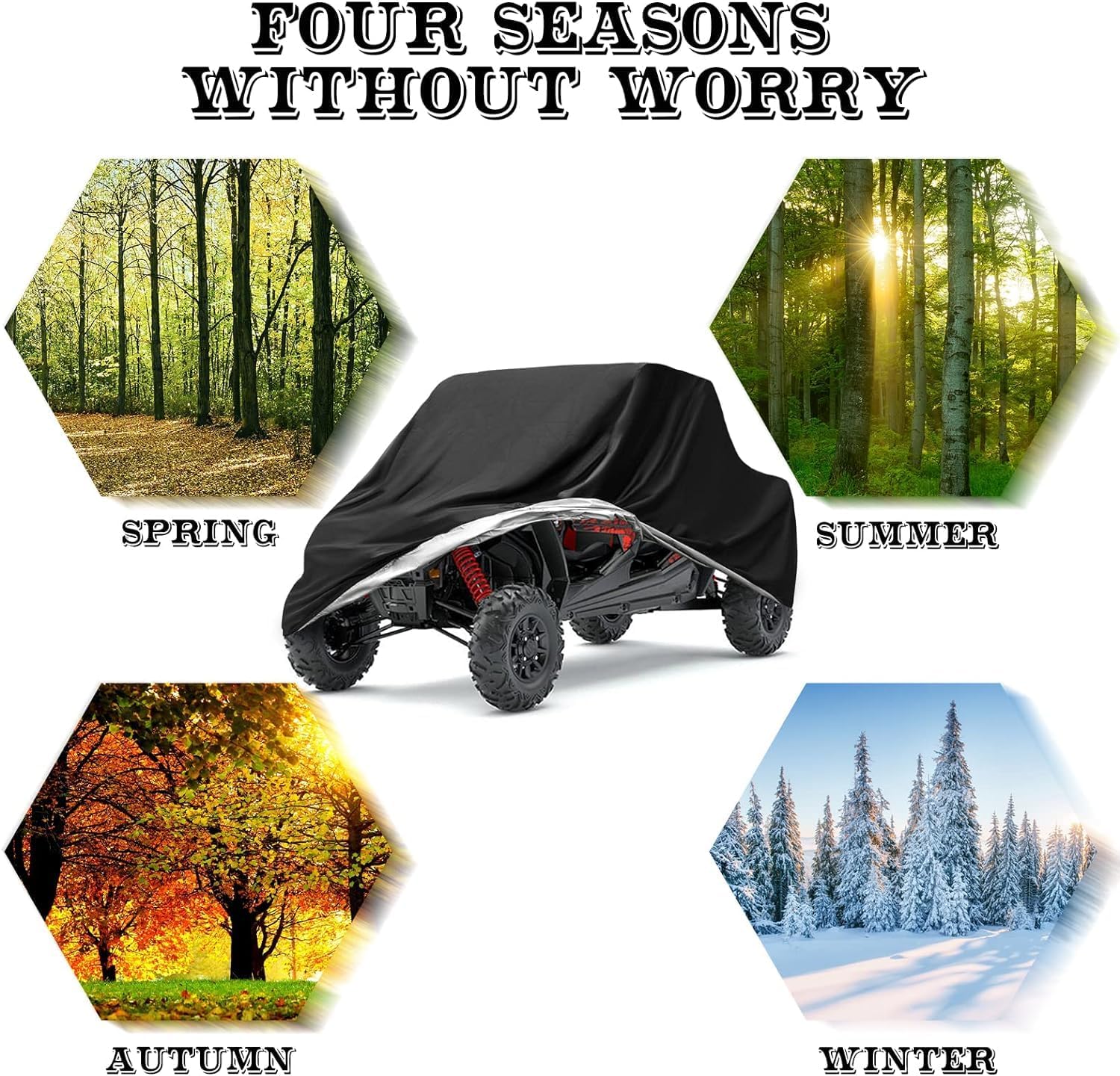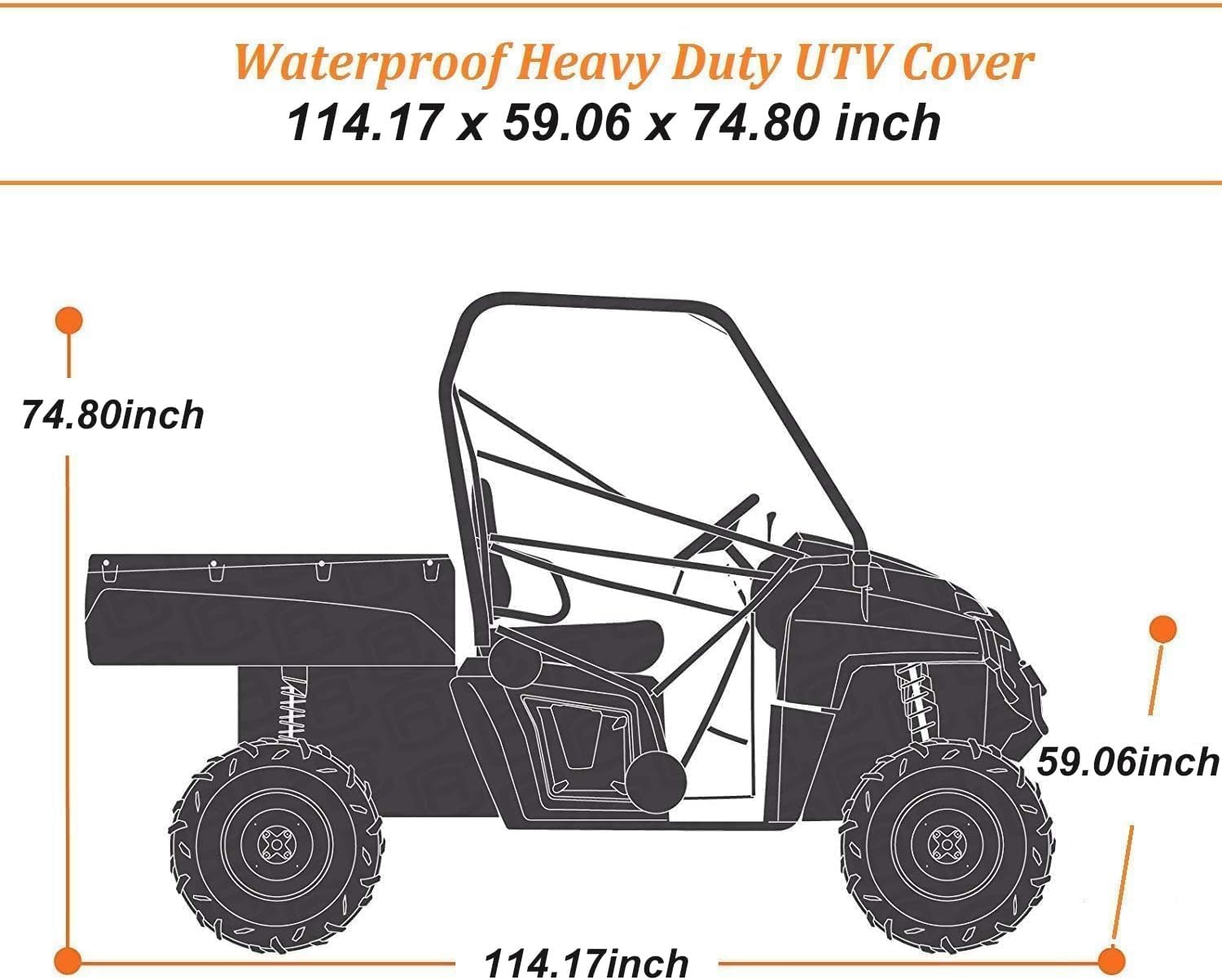 - [Check Your UTV Size]: Fit all 2-3 seater UTV's, 114.17"x 59.06"x 74.8". Our covers are compatible with polaris, rzr, ranger, canam, suzuki, honda, kawasaki, yamaha and more. If you not sure your vehicle fit or not, please let our customer service help you