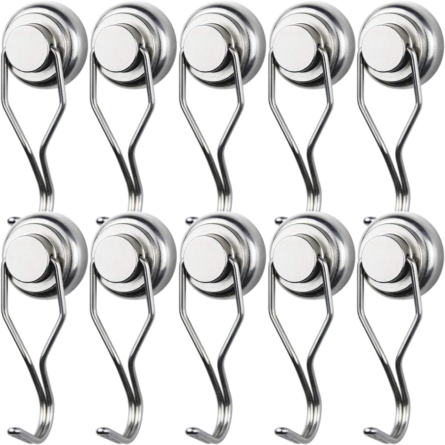 MIKEDE Magnetic Hooks Heavy Duty, 60 lb+ Strong Swivel Swing Neodymium Magnetic Hooks for Hanging, Strong Magnet Hanger for Cruise Cabins, Locker, Toolbox, Home, Kitchen - Pack of 10