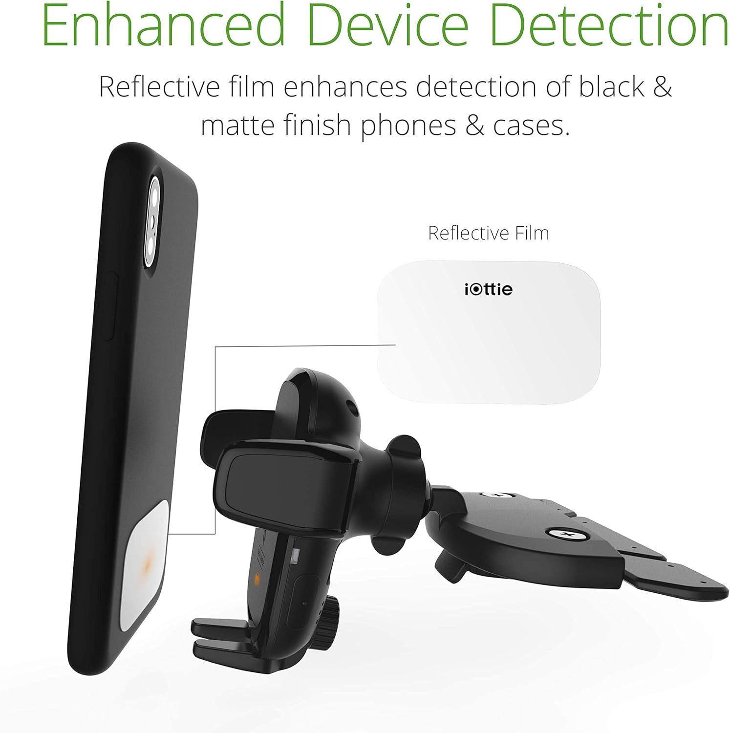 - ADJUSTABLE BOTTOM FOOT: The foot of the mount can be raised and lowered to accommodate phones of various sizes. This helps to align the Qi coils for an efficient charging experience.