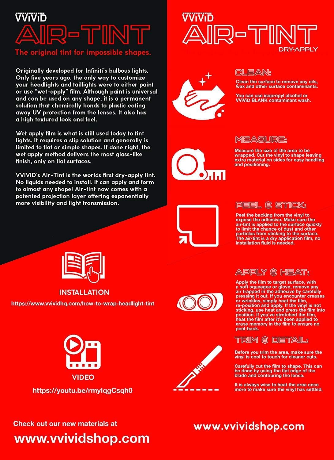 - VVIVID Air-Tints are an industry first: a headlight/taillight tint with all of the technologies developed in VVIVID+ premium materials. They include an air-release membrane which allows you to install the tint dry ( without installation liquid ) Ready to use out of the box!