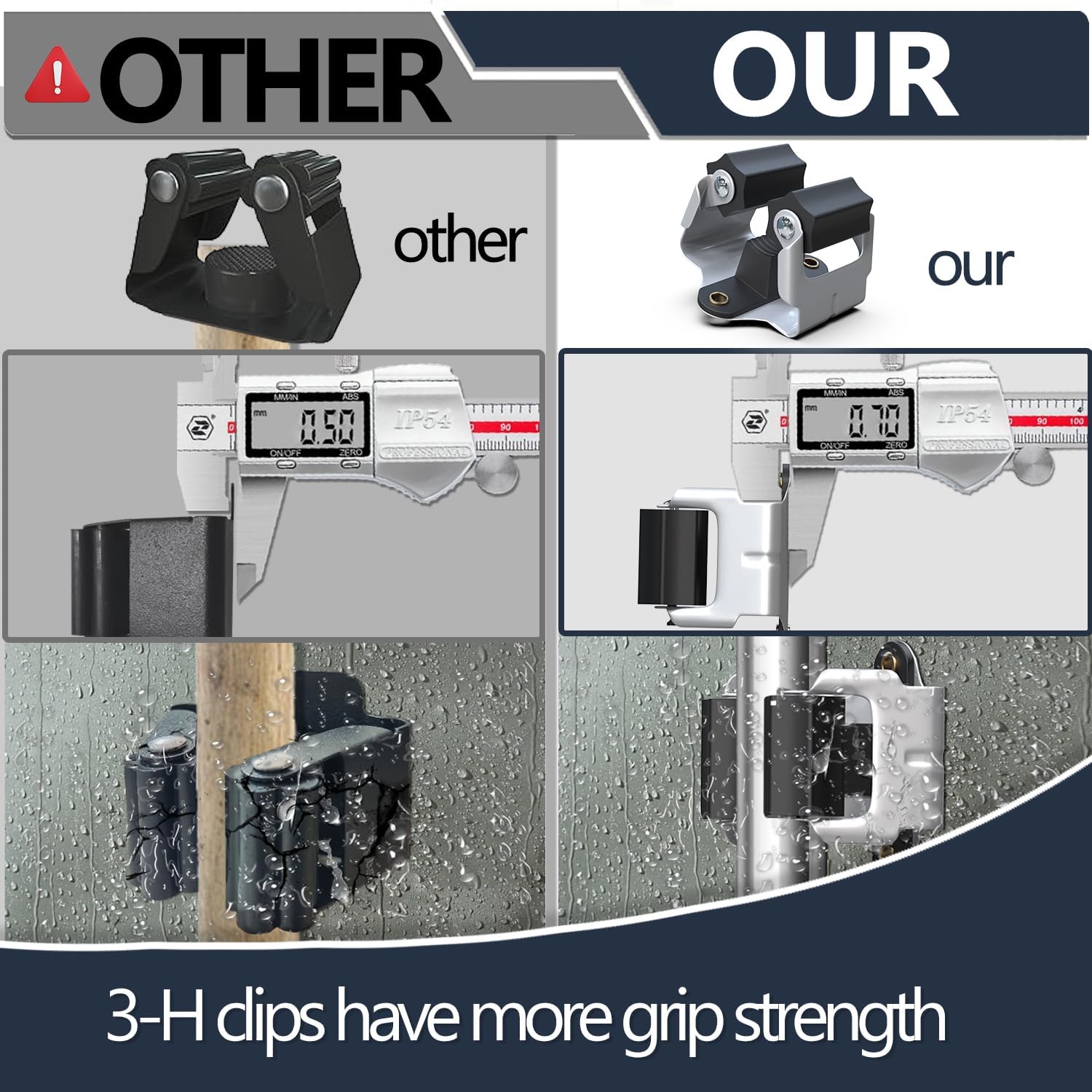 - EASY TO USE: Because mop broom holder wall mounted is made of 0.7mm thick metal material instead of 0.5mm as most of the ones on the market, you don’t have to worry about deformation even if you use it indoors or outdoors for a long time.You can slide the broom in and out with one hand. Unlike plastic mop holders with spring-loaded rollers, this broom organizer wall mount has rubber rollers to hold the handles, allowing the handle to slide in from the front and be held firmly in place.