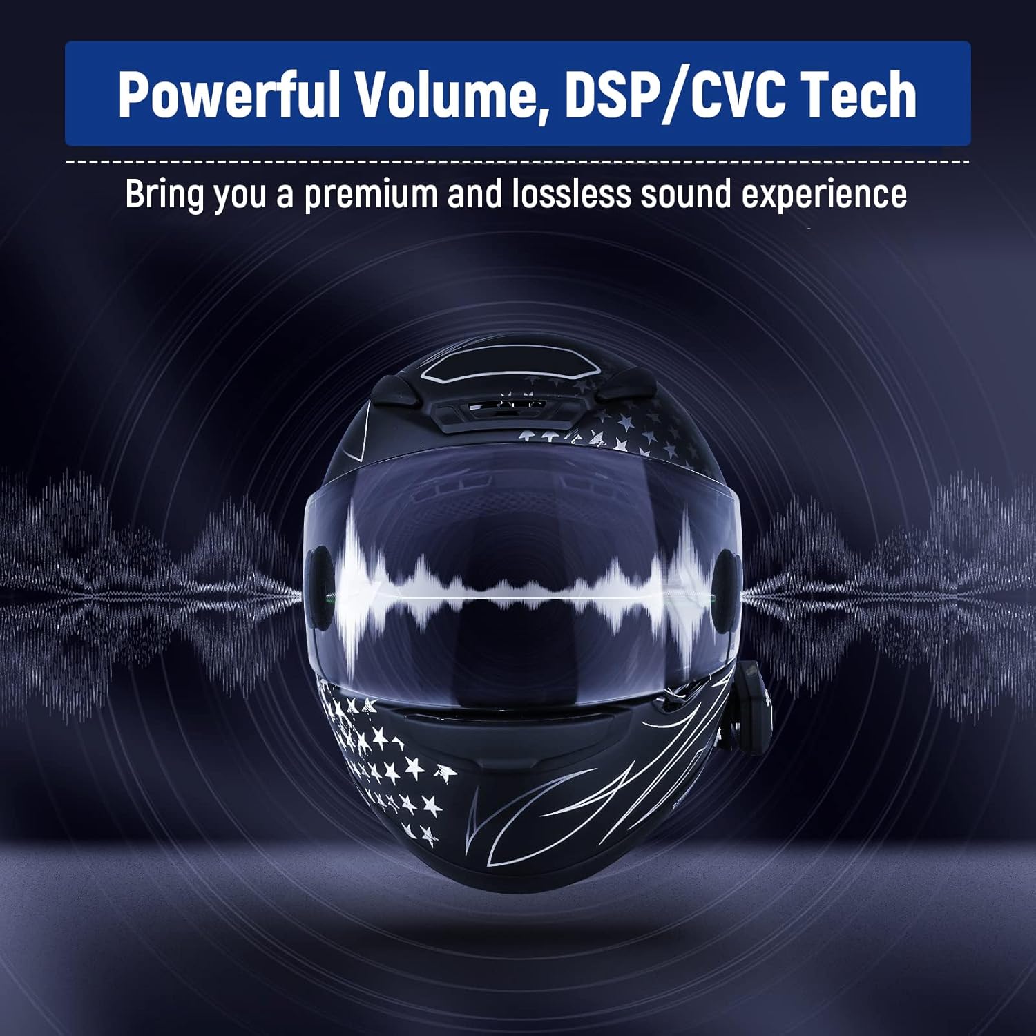 - Music Sharing & Hi-Fi Stereo Sound: The B4FM helmet Bluetooth headset allows 2 riders to enjoy the same song with a double-click of the POWER BUTTON, features Mylar coaxial speakers, wind-resistant mics, and DSP/CVC tech for unparalleled 3D audio quality. Let's enjoy crystal-clear music even at speeds up to 120km/h