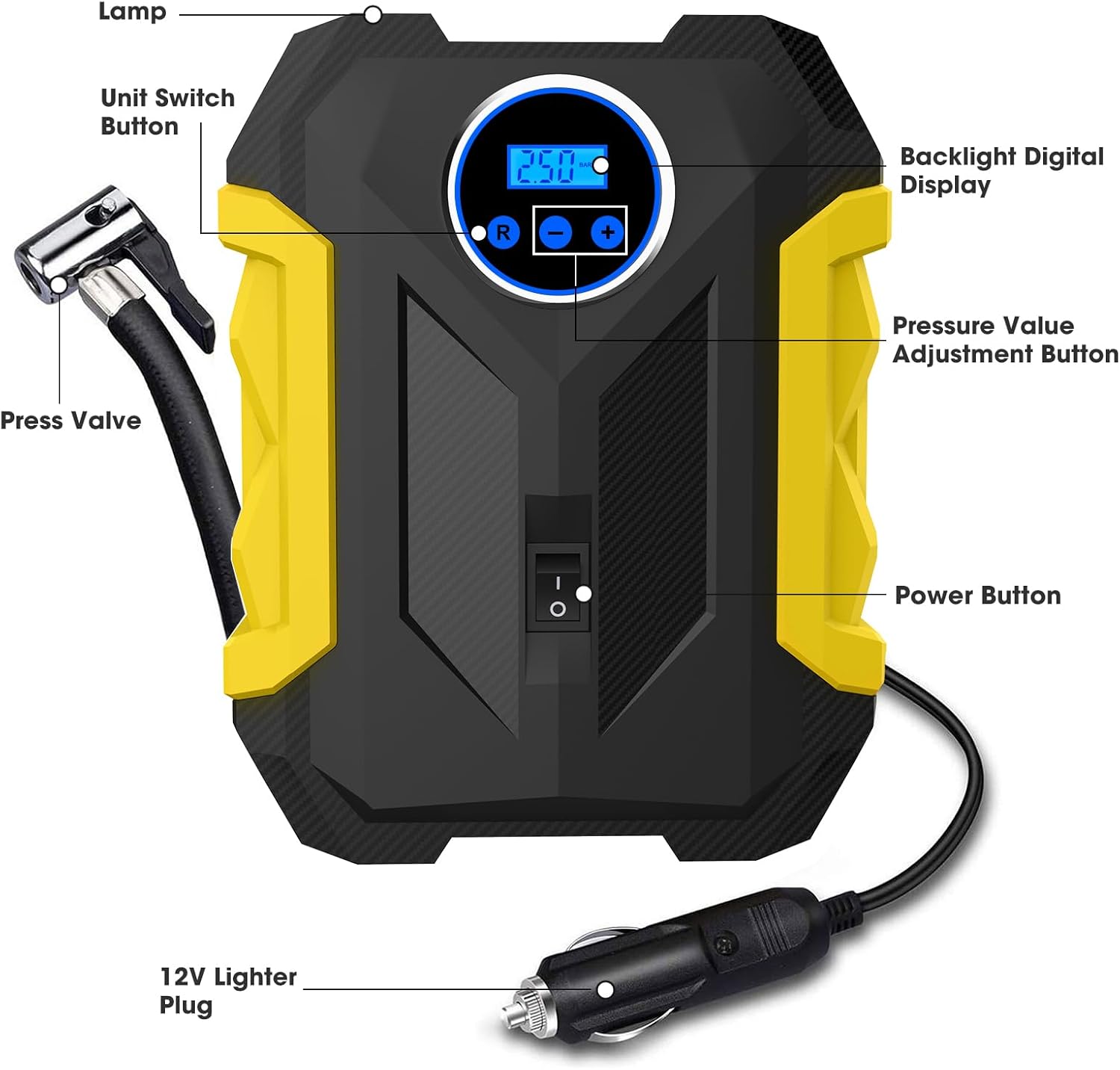 Digital Air Compressor for Car Auto Pump Portable Tire Inflator with LED Light DC 12V
