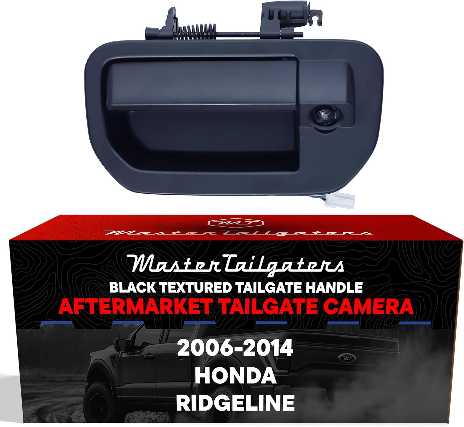 Master Tailgaters Black Tailgate Handle with Backup Camera Replacement for Honda Ridgeline (2006-2014) | IP68 Waterproof | Parking Grid Lines Available | Easy to Install