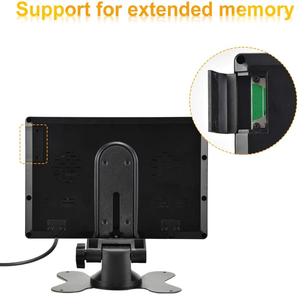 - ăCar Monitor DVRăGreat Recording Function, rear view camera with monitor supports record 2 channels camera at the same time and loop recording. Saving the video automatically to 256GB maximum SD card(Not Included). 7 inch LCD display monitor is directly attached to flat surface dashboard with provided adhesive foam and bracket
