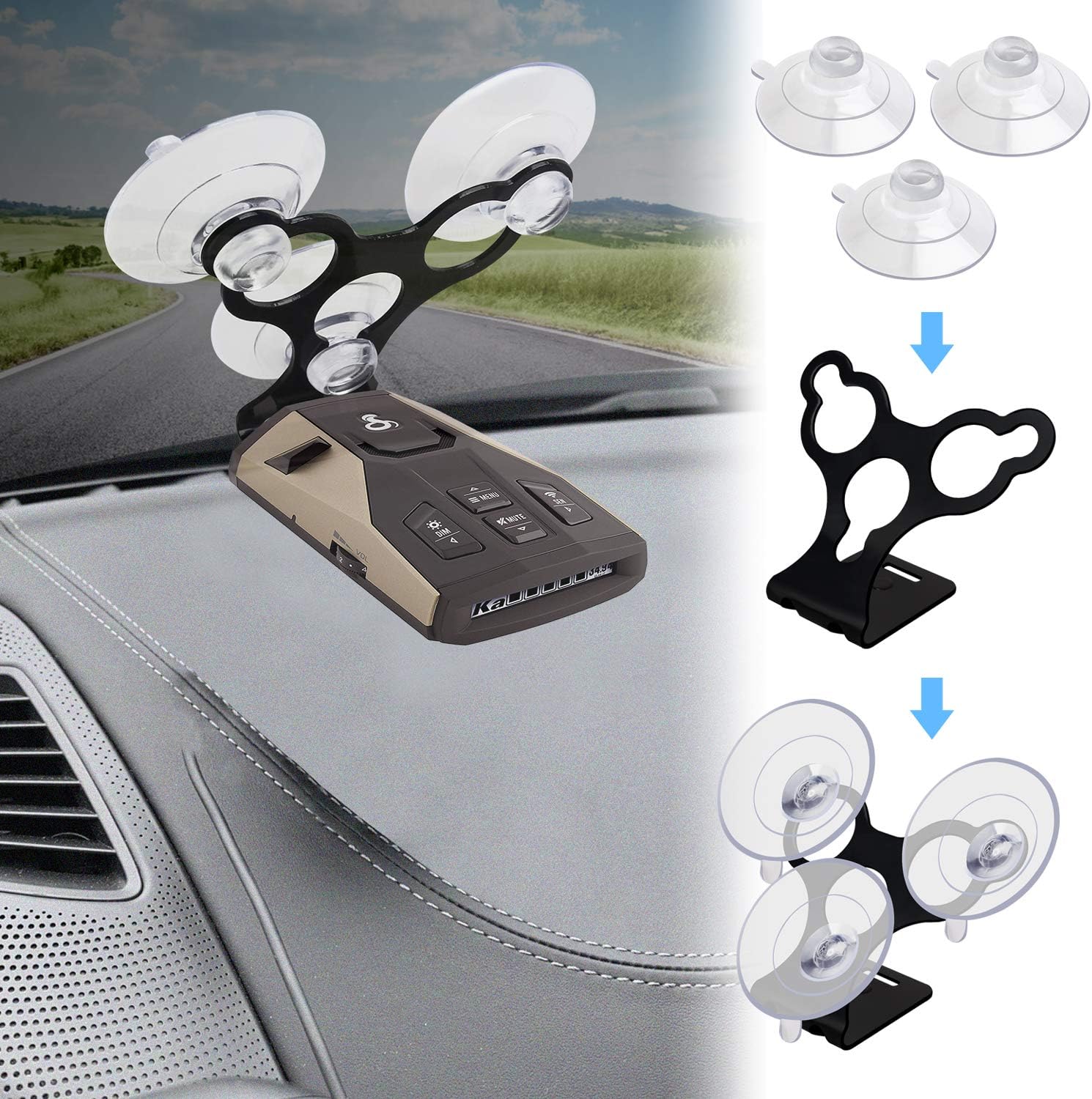 Windshield Suction Cup Mount Holder Compatible with Cobra Radar Detectors Cobra RAD 450, 8-Band, ESD-6100, ESD-7000, XRS-9300, PRO-9780 and All Recent Models (Bracket & 6 Suction Cups)