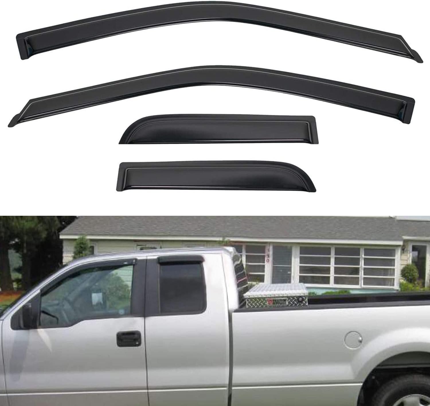 4pcs Window Visors Compatible with 2015-2024 F150/ F250/F350/F450/F550 Super Duty Extended (Super) Cab with Half Size Rear Doors Front+Rear Smoke Tint Sun/Rain Guard Outside Mount Tape-On Vent