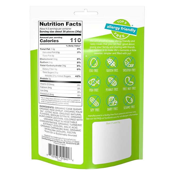 - ASSORTED SOUR FLAVORS: YumEarth Giggles are an allergy-friendly twist on a classic candy in favorite mouth-puckering flavors (Lemon, Strawberry, Orange, Grape, Green Apple) with no artificial dyes, artificial flavors, or high fructose corn syrup.