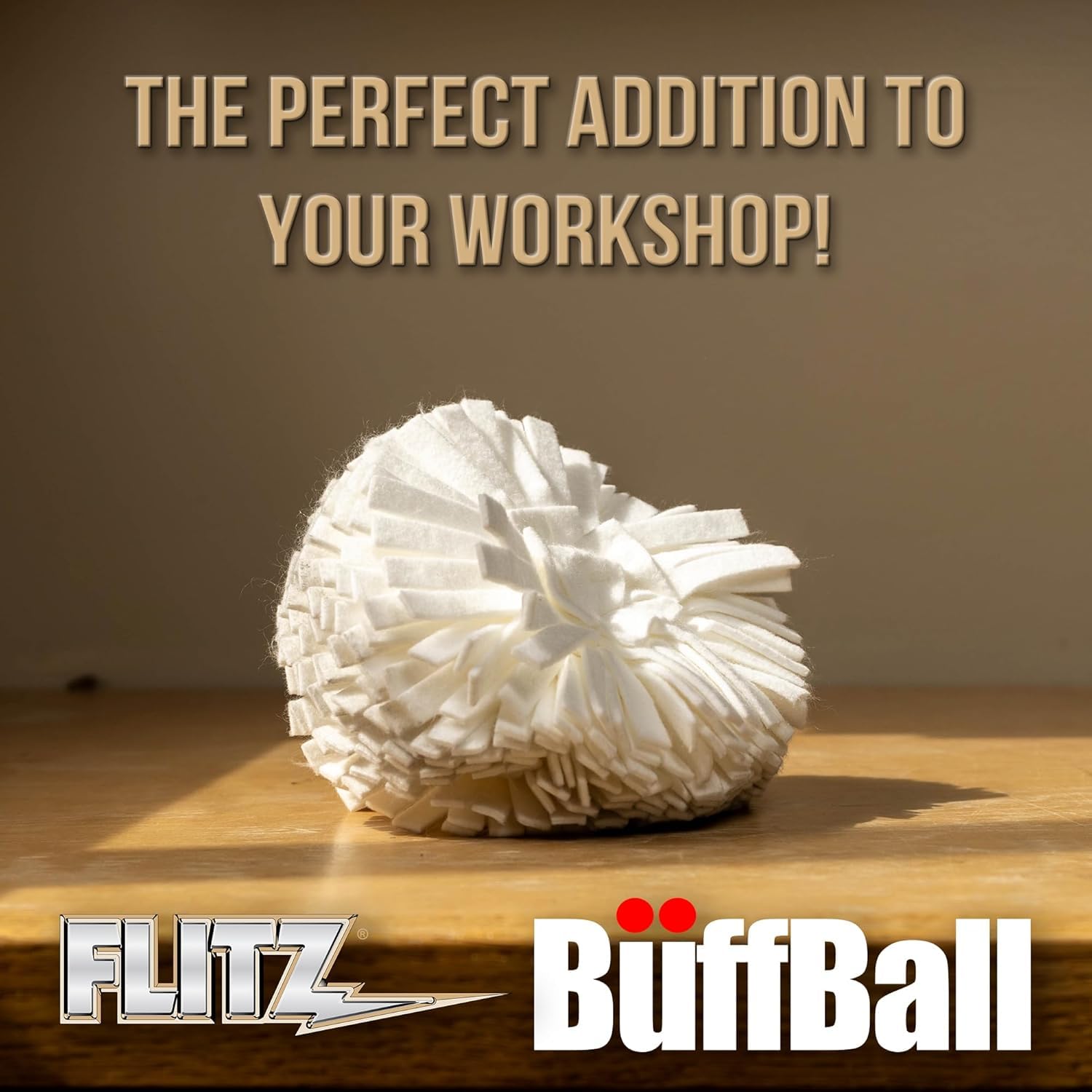 Flitz Buff Ball w/ 1.76oz Metal Polish Paste - 7in Drill Buffer Polisher Attachment for Any 3/8in Drill - Self-Cooling, Washable Polishing Ball to Buff, Shine, & Protect All Metals, Plastics (1 Pack)
