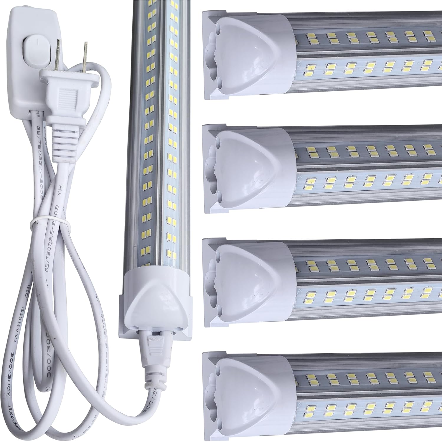 LED Shop Light Fixture, 4FT, 60W 7500LM, 6000K Cold White, 4 Foot T8 Integrated LED Tube Lights, Plug in Warehouse Garage Lighting, V Shape, Linkable with On/Off Switch (4PCS)