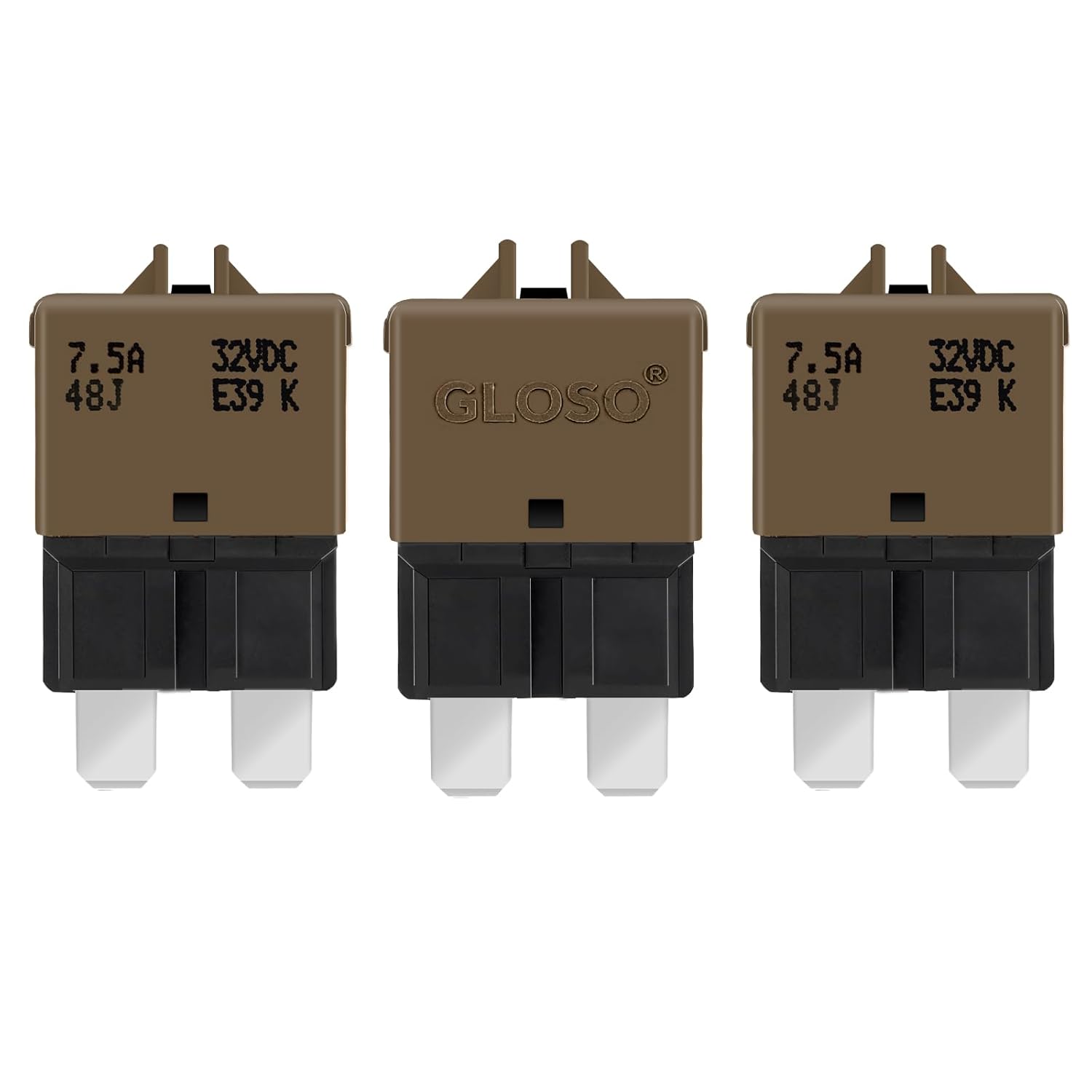 GLOSO Circuit Breaker E39 (T3) Manual Reset Fuse For Car Truck RV Automotive Marine Boat Trolling motor & Custom Wiring Audio battery protection/Low Profile ATC/ATO (7.5A - 3 Pack)