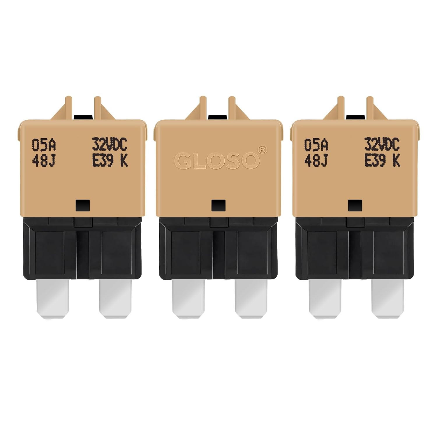 GLOSO Circuit Breaker E39 (T3) Manual Reset Fuse for Car Truck RV Automotive Marine Boat Trolling Motor & Custom Wiring Audio Battery Protection/Low Profile ATC/ATO (5A - 3 Pack)