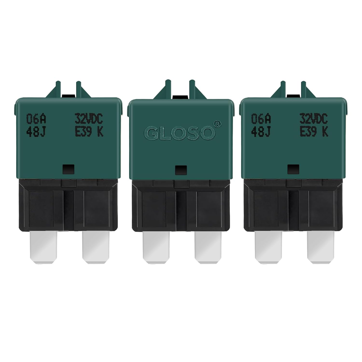 GLOSO Circuit Breaker E39 (T3) Manual Reset Fuse For Car Truck RV Automotive Marine Boat Trolling motor & Custom Wiring Audio battery protection/Low Profile ATC/ATO (6A - 3 Pack)