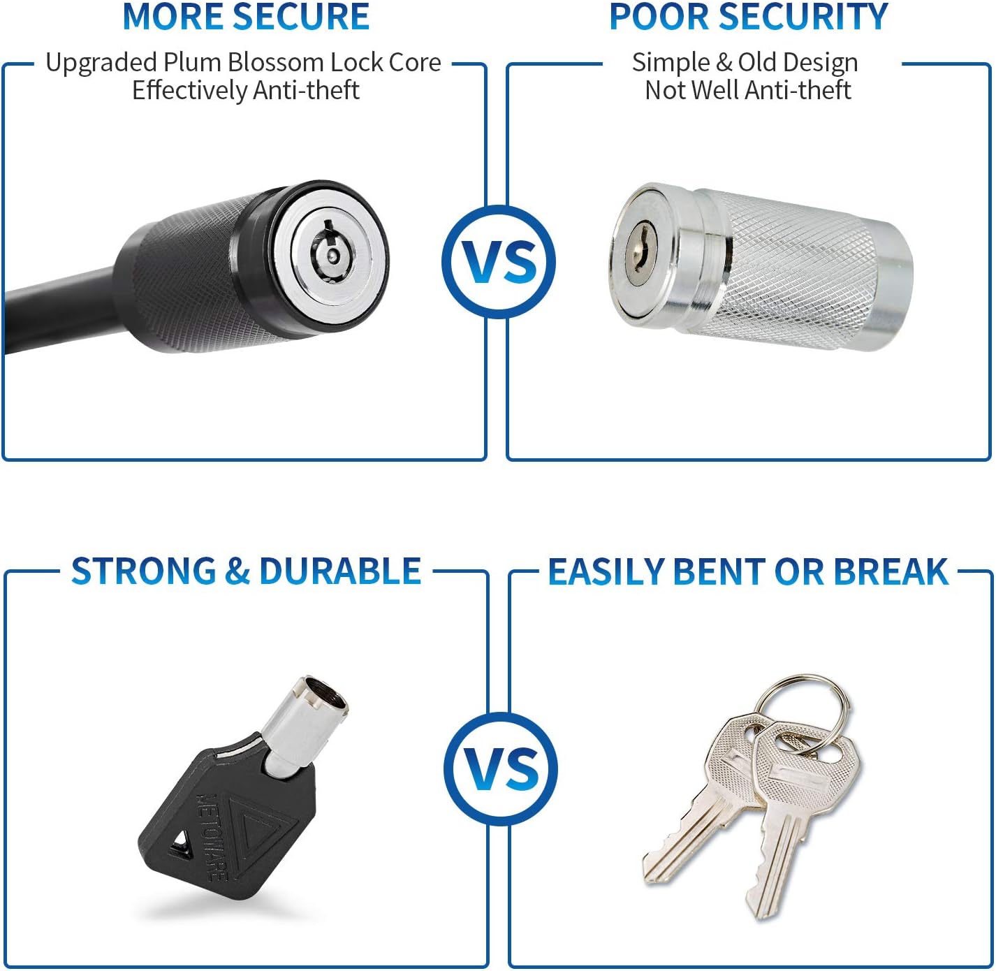 - SAFE & EASY TO USE - The core of the hitch pin lock is made of premium zinc alloy tubular. Its anti-theft design can withstand significant blogs from different kinds of external force. Additionally, this hitch lock set includes rubber cap which effectively keeps the keyhole away from dirt, dust, water.