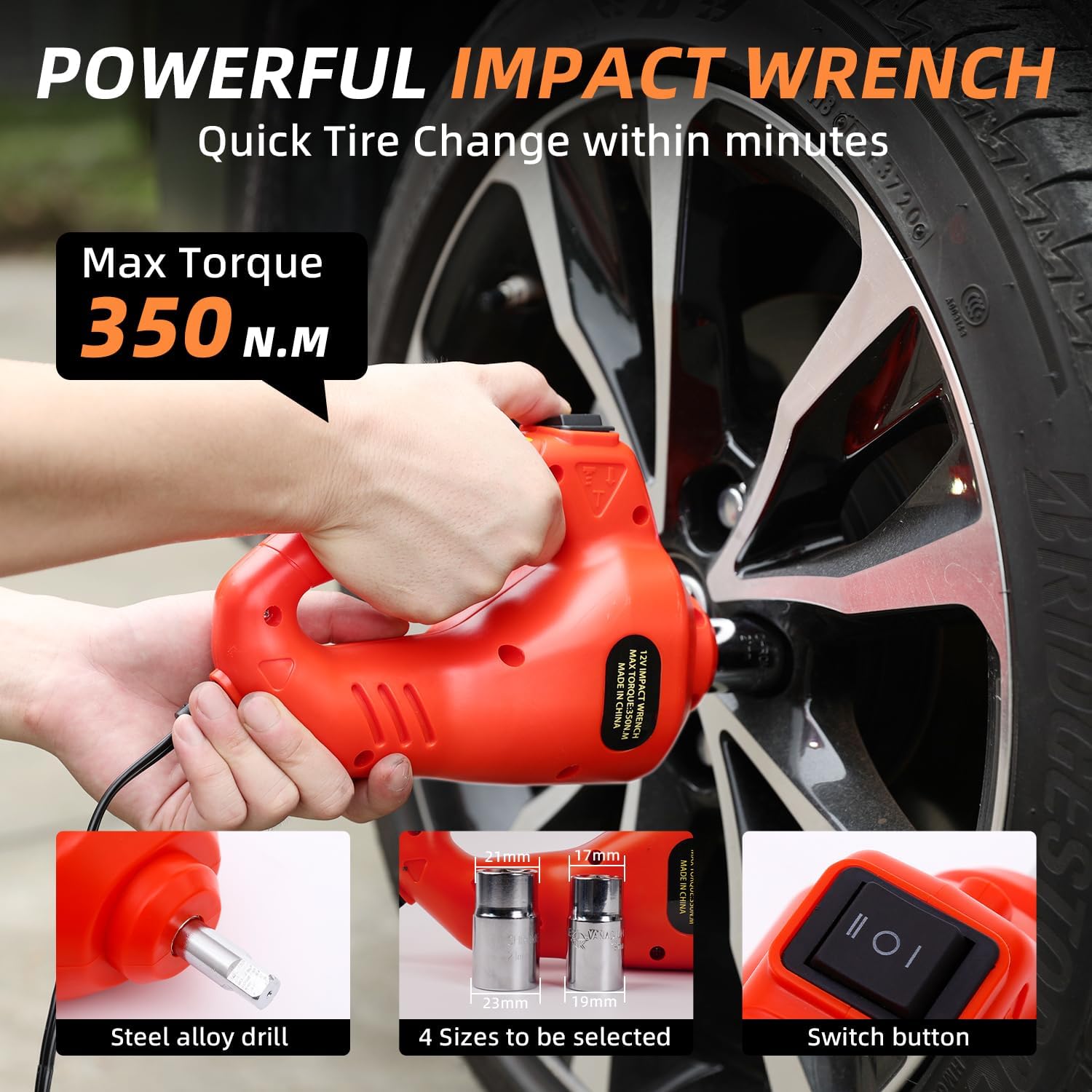- Complete Car Jack Kit: Including electric car jack; automotive electric impact wrench; safety hammer; plastic case; 3.5m power cable; power clamp with wire; pair of gloves; user manual, etc. Very portable and easy to use